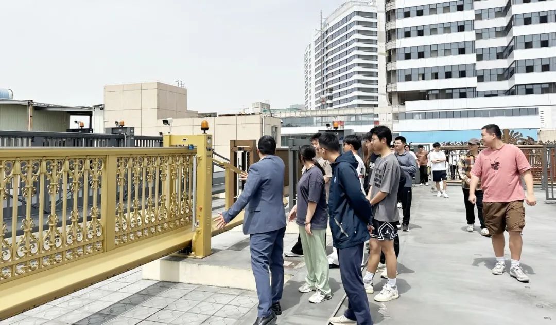 在测试场地,同学们亲眼见证了智能闸门如何精准识别行人车辆,并自动调整开合策略。更让同学们惊叹的是,当工作人员模拟"尾随"等异常情况时,系统能立即做出安全响应。通过工程师的详细讲解,员工们了解到这些看似简单的门禁系统,背后其实融合了机器视觉、物联网等多项技术。