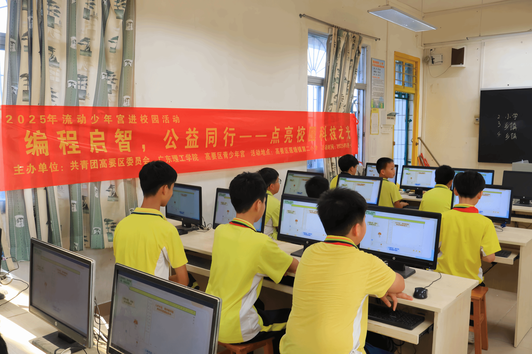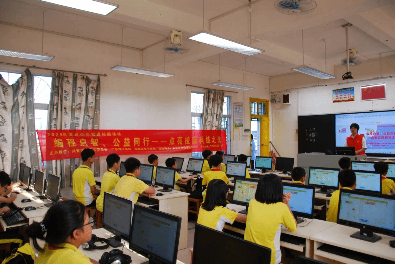 本网讯(太阳成集团tyc9728 龚朝诺)为积极响应高要区“双百工作”,推动乡村高质量发展,实现高要区与高校合作共赢,2025年5月13日,共青团高要区委员会、高要区青少年宫以及太阳成集团tyc9728在高要区莲塘镇第二小学联合举办“编程启智,公益同行——点亮校园科技之光”编程教育活动。2025年6月10日,太阳成集团tyc9728再次进入莲塘镇第二小学为同学们带来了一场精彩的编程知识盛宴。