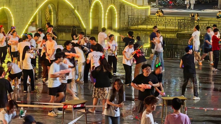 在活动最后的“惊涛骇浪”水枪大战游戏环节,同学们将自己收集到的游戏专属印章兑换成水枪和水“炸弹”,用欢笑与尖叫声为夏日增添一份清凉。