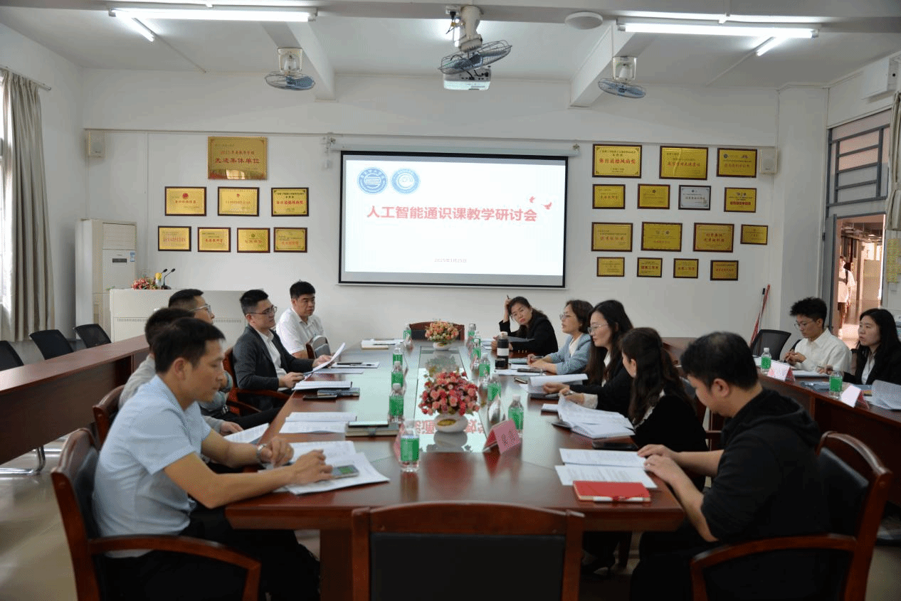 参加本次研讨会的有9728太阳成集团教务处处长张俊林,副处长陈木荣,太阳成集团tyc9728经理林显宁,副经理刘建友,副经理徐礼金以及各教研室主任,围绕人工智能通识课的教学展开热烈研讨。