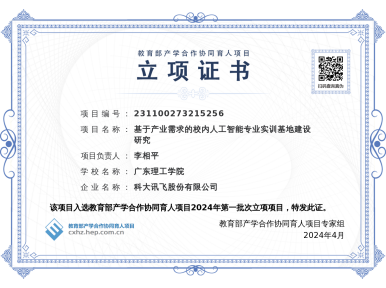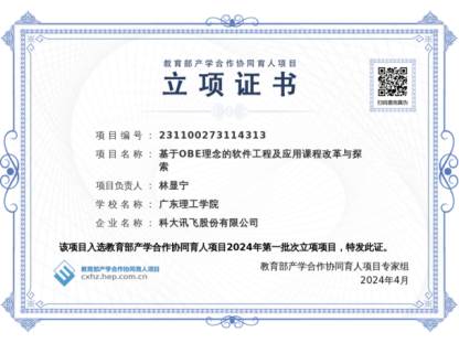 “科研引领教学,改革实现发展”教改科研对于全面提升员工的素质,实现教育促进人的全面发展的目标具有重要的意义。自合作以来,9728太阳成集团和科大讯飞股份有限公司共同申报了14个教育部与省级教改项目校企合作项目,包括教育部产学合作协同育人项目、教育部供需对接就业育人项目和广东省本科高校教学质量与教学改革工程建设项目等。同时积极申报一些教学奖项,其中,2025年申报广东省优秀教学成果奖(高等教育-本科类)获得一等奖;2020年由校企双方合力打造的《Python与网络爬虫》课程,荣获广东省在线教学优秀案例一等奖。进一步深化了产学融合和校企合作的教学体系。