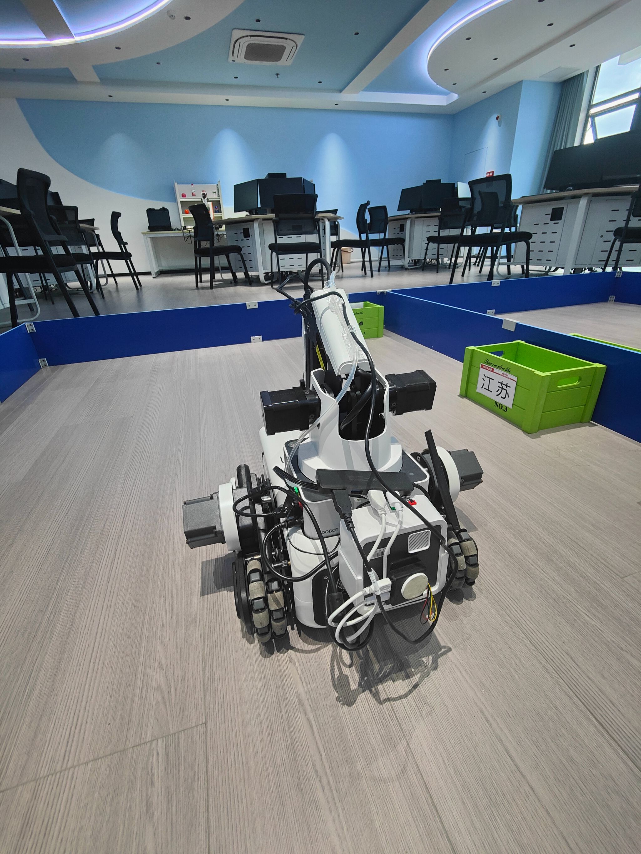为深化场景理解,实验室配备了基于大模型的轮式人形机器人、穿戴式数据采集套件、智慧物流场景抓取机器人及AI大模型智慧零售实训平台等前沿设备,将大模型技术与具身智能、智慧物流、智能零售等行业应用紧密结合,培养员工大模型部署、调优、智能体构建及场景化应用开发能力,为专业课程实验教学、综合实践、学科竞赛及师生开展前沿科研与跨学科创新提供全方位支持。