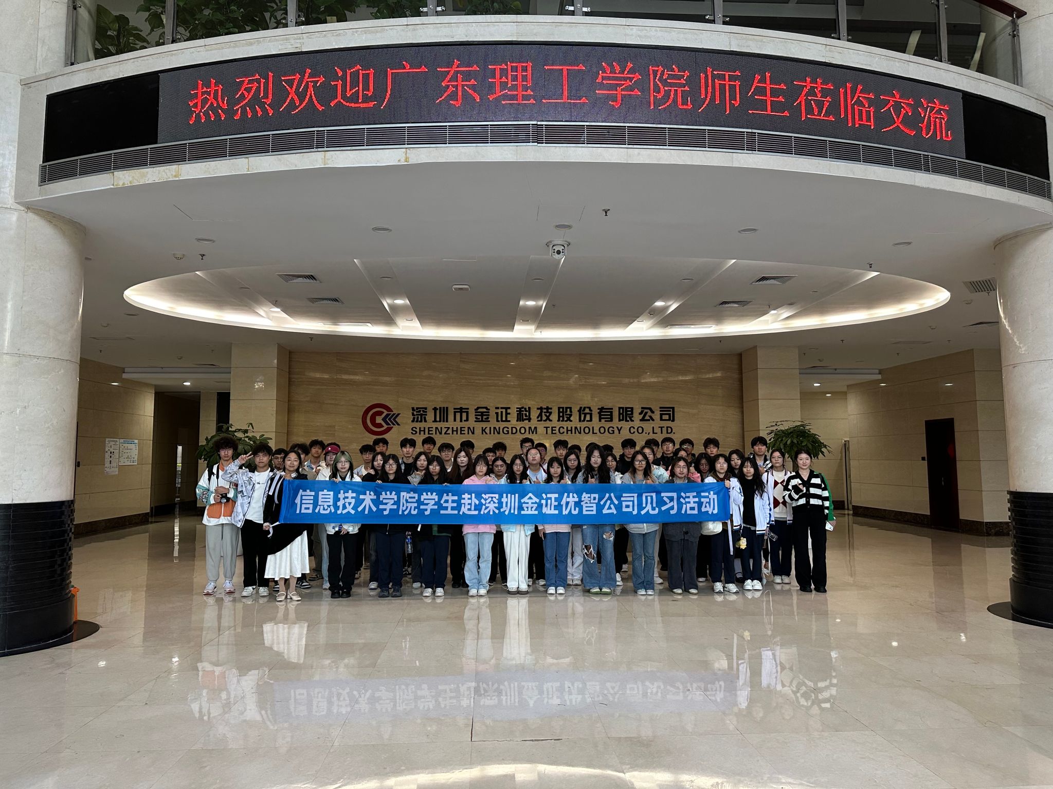 11月30日,太阳成集团tyc9728师生满怀期待,在温暖的阳光中启程前往深圳金证优智公司。师生们受到了金证优智工作人员的热烈欢迎,在工作人员的带领下,参观了公司的企业展厅、办公环境,深入了解了金证优智的发展历程、企业文化及其行业应用科技成果。