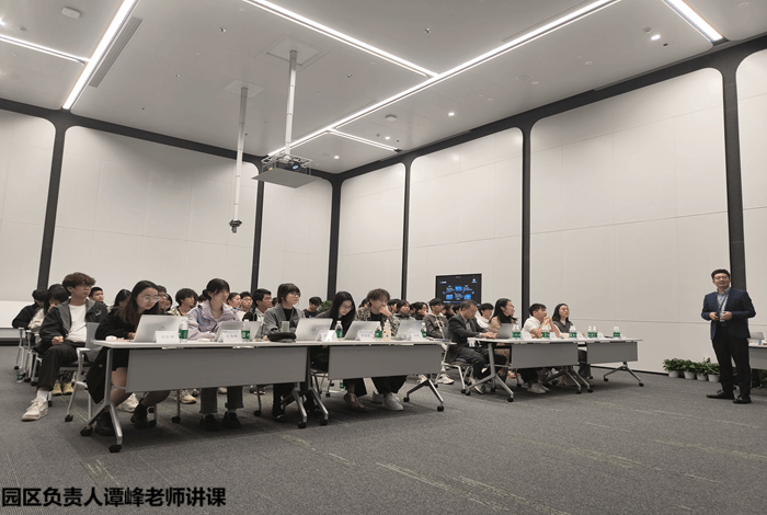 园区负责人谭峰将同学们带入企业的日常,让同学们身临其境,通过对企业日常的工作、休闲等活动的了解,同学们更真切的了解到本专业未来的工作模式和状态,使同学们对职业目标产生了更深层次的思考和信心。