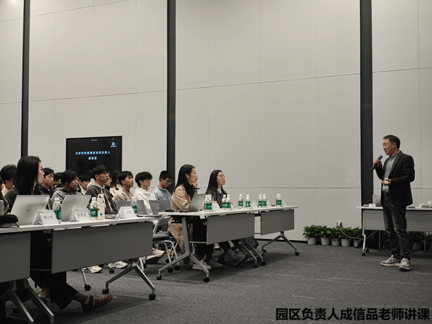 园区负责人成信品通过讲述自己的创业之路、创业经历,拉近与同学们的距离,使得同学们能够畅谈自己平时在学习中所遇到的困难和坎坷,引导同学们勇敢地迈向自己未来的职业之路。