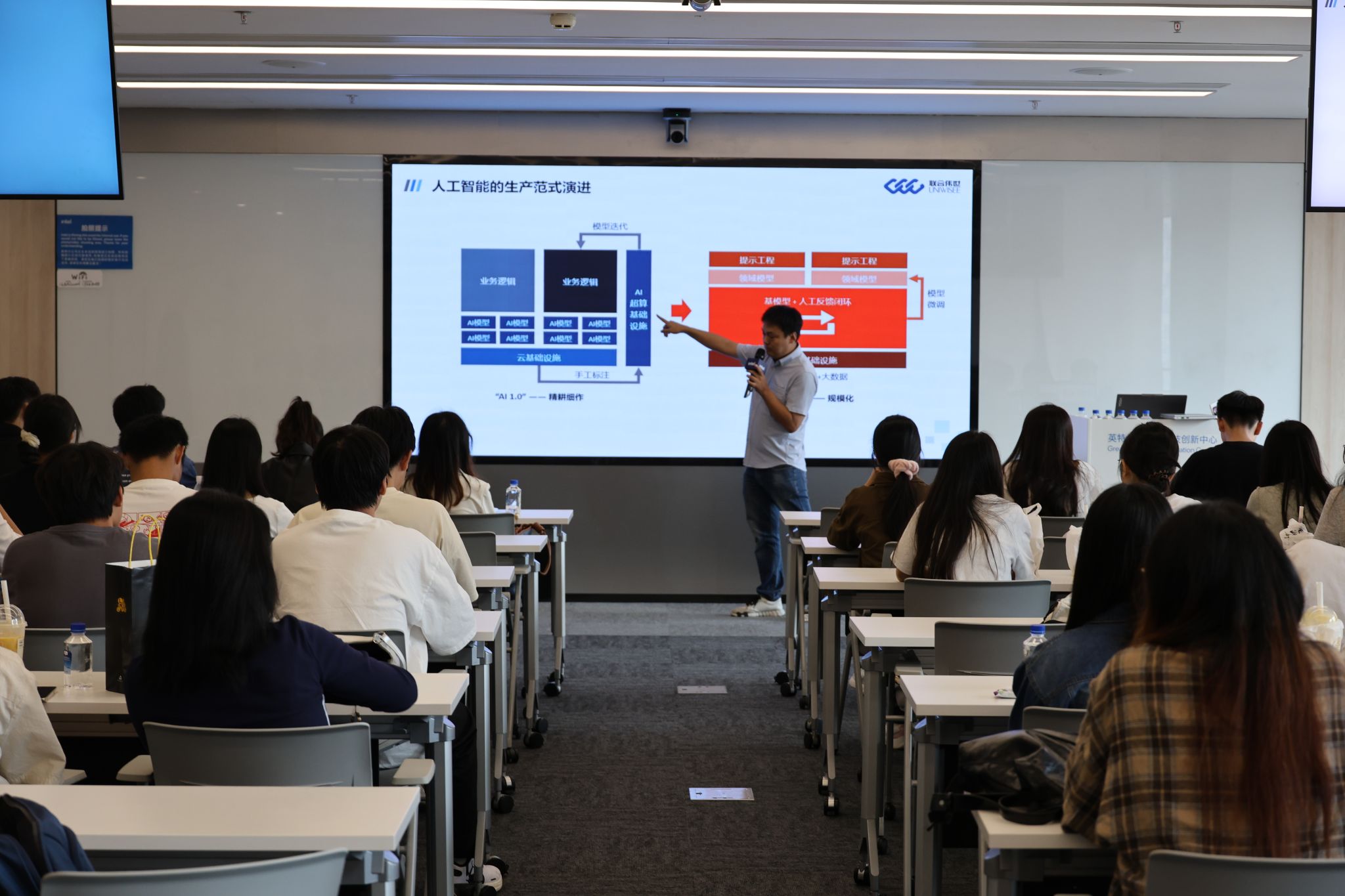 随后,北京联合伟世科技股份有限公司首席AI应用架构师邵秋实讲师为各位师生带来“从人工智能到AIGC”主题讲座。邵讲师从五个方面为大家深入浅出地讲解了人工智能的发展历程以及AIGC这一新兴领域的崛起和应用前景。邵讲师幽默风趣的讲说风格,激发了同学们的热情,同学们积极主动发问,邵讲师认真的回答了同学们对于人工智能的一系列问题。相信通过此次讲座,同学们对人工智能和AICG有了更全面、更深入的了解,也对未来科技的发展趋势有了更清晰的把握。