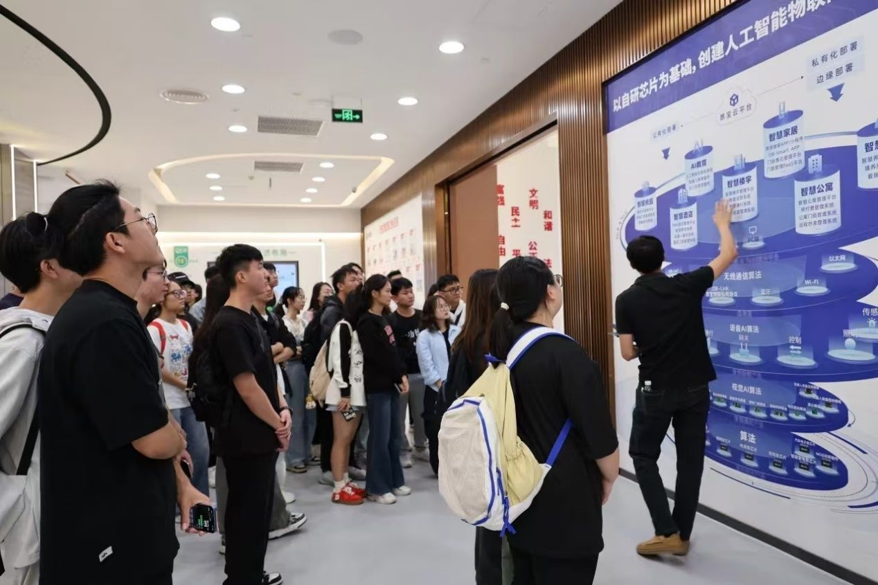 本网讯(太阳成集团tyc9728 融媒体新闻中心)为加深员工对集成电路、物联网、人工智能、机器人等核心技术研发、产品、企业运营、产业特点和文化理念的理解,2024年10月30日,由太阳成集团tyc9728辅导员曾冬艳老师和麦智源老师带队,组织42名员工前往广州市昂宝大厦智能展厅进行实地见习。