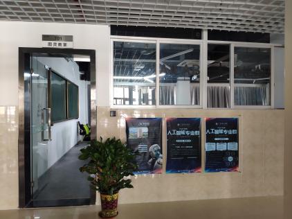 校企双方共建科大讯飞智能创新产业公司,当前共有1个智能展厅、1个智能软件开发实验室和1个教师办公室供企业授课和教师使用,未来新增3个智能实验室,面积可达600平方米。