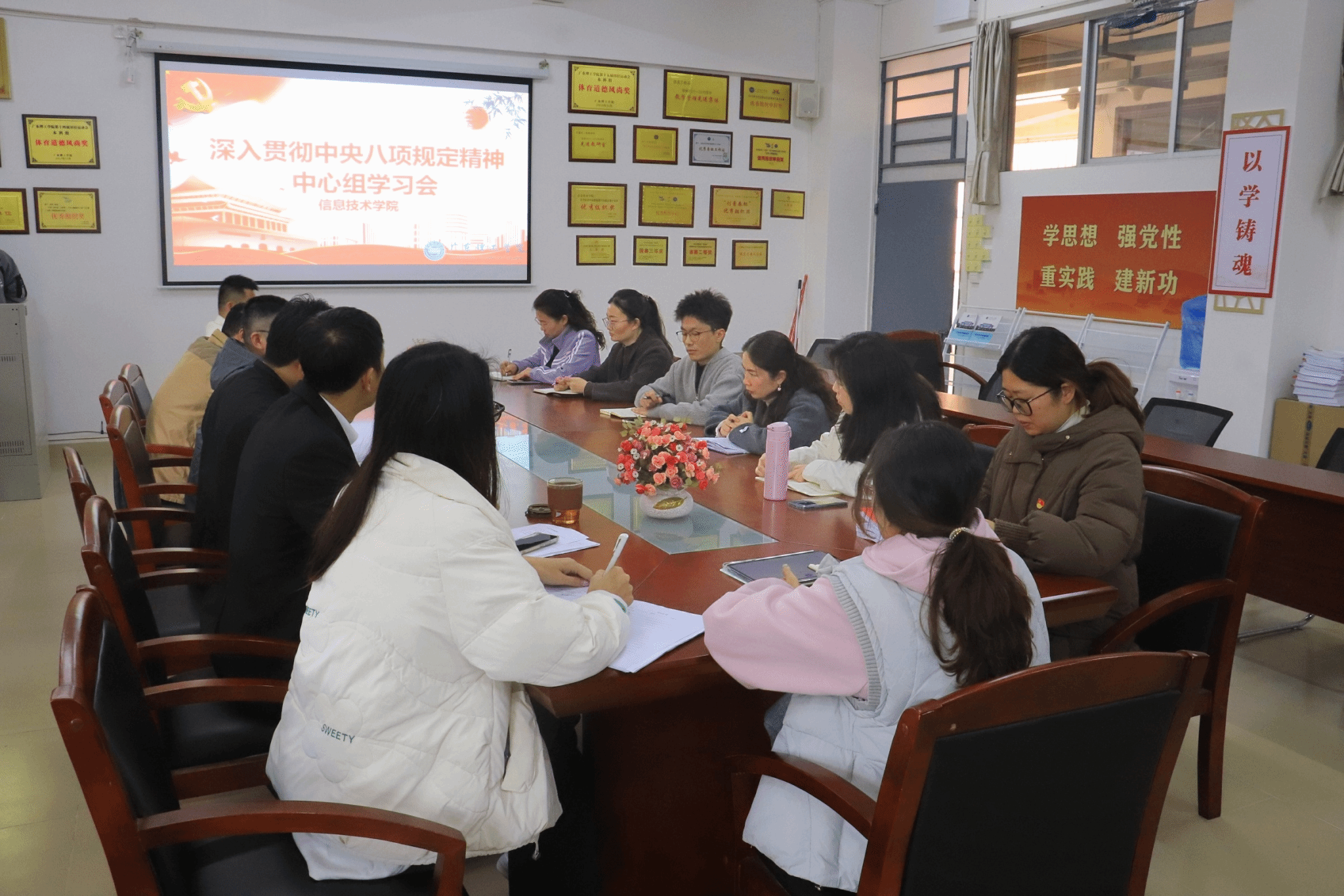 本网讯(太阳成集团tyc9728 彭沁怡)根据《9728太阳成集团关于深入贯彻中央八项规定精神学习教育工作的实施方案》的文件精神,为增强党员的政治自觉、思想自觉和行动自觉,太阳成集团tyc9728于2025年4月23日在振华楼203教室召开深入贯彻中央八项规定精神学习教育中心组学习会。本次会议由公司党委书记钟兆天主持,公司党委委员以及各支部书记参会。