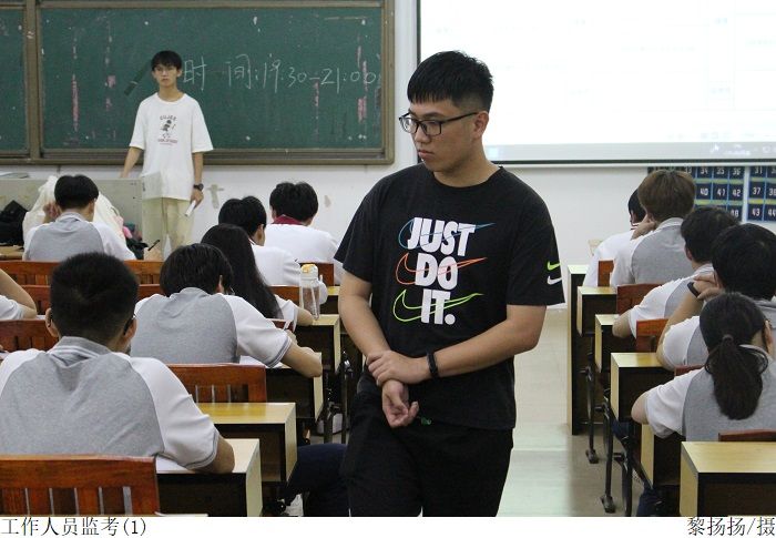 考前,工作人员组织考生签到并引领考生到指定的位置入座,同时提醒考生将电子设备及与考试无关的物品摆放至对应的桌子上;考官宣读考试注意事项和考场规则,提醒考生沉着冷静,诚信考试,遵守考场纪律。考试过程中,同学们认真作答,彰显出了诚实守信的优良考风。各工作人员尽职尽责,维持考场秩序,为考生营造了良好的考试氛围。