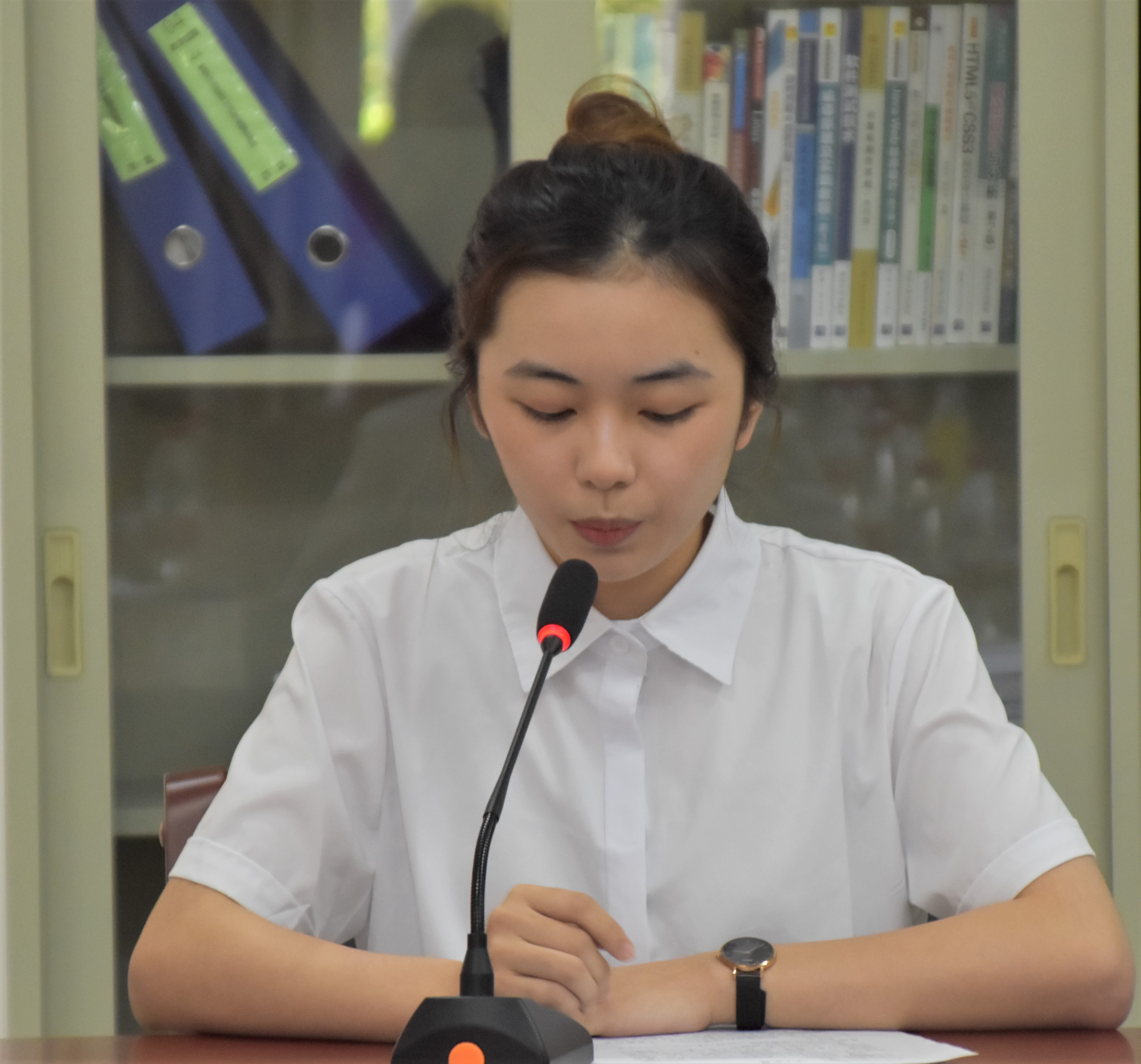 胡娇铃老师介绍此次讨论会的具体流程并表示发展对象要时刻严格要求自己,端正入党动机,做好接受党组织考验的准备。发展对象依次汇报自己在考察期间的学习、工作、生活和思想等各方面表现,讲述了自己的入党动机、入党历程和党史的学习程度,表达入党的坚定决心和强烈愿望。在场党员同志对发展对象的入党思想动机、政治行为素养等进行讨论并进行投票,最终投票结果由胡娇铃老师公布。梁星全书记希望发展对象能够时刻以党员的标准严格要求自己,保持良好的党员风貌,发扬党风精神,学习党史文化,不断提升自我政治素养,提高自身文化素质,发挥先锋模范带头作用。