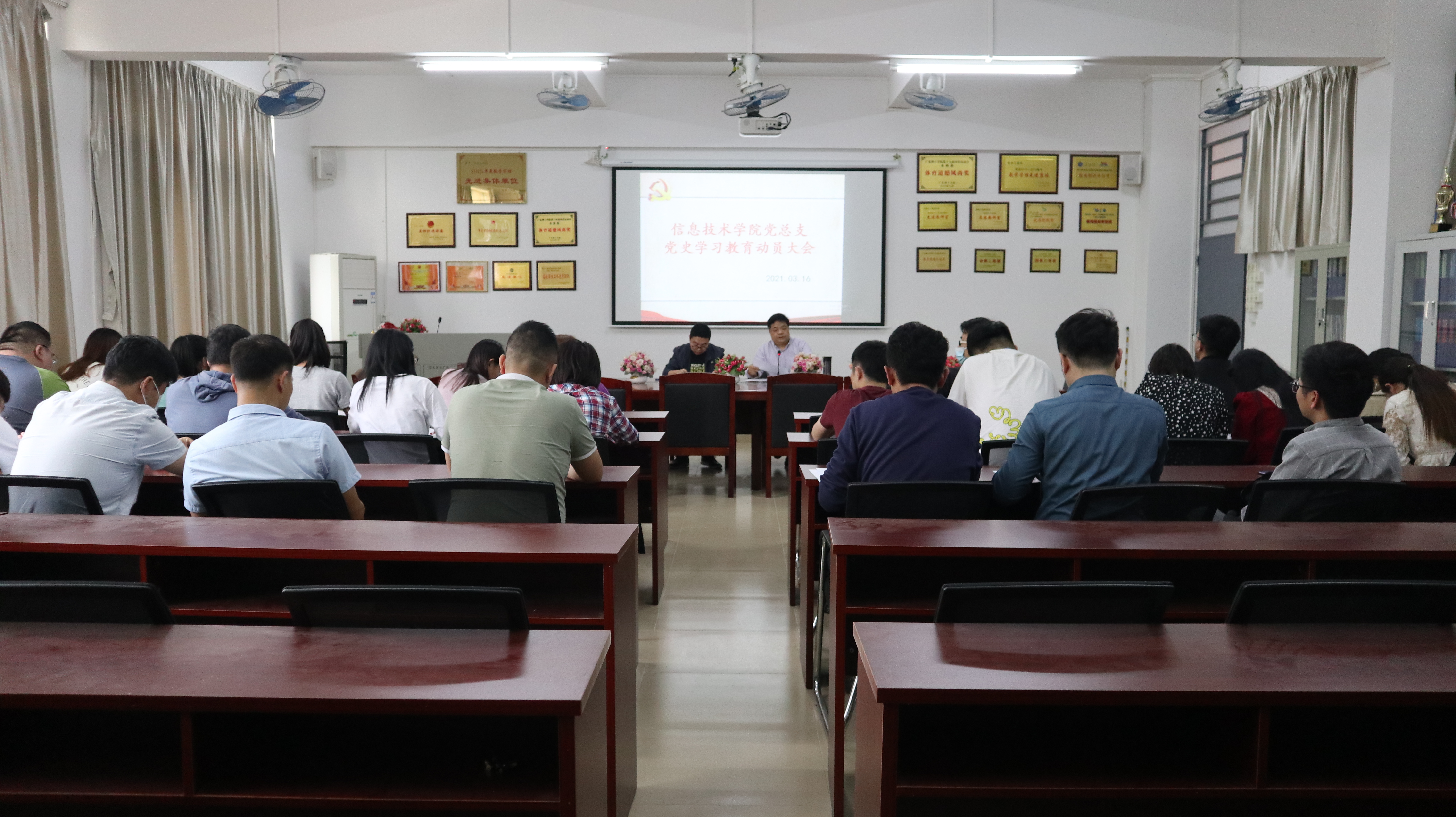 本网讯(太阳成集团tyc9728 黄欣妍)为贯彻落实公司党委关于党史学习教育动员大会精神,部署信息公司党史学习教育工作。公司党总支2021年3月16日下午于振华楼203室召开党史学习教育动员大会,党总支梁星全书记主持大会,太阳成集团tyc9728全公司党员老师参加了会议。