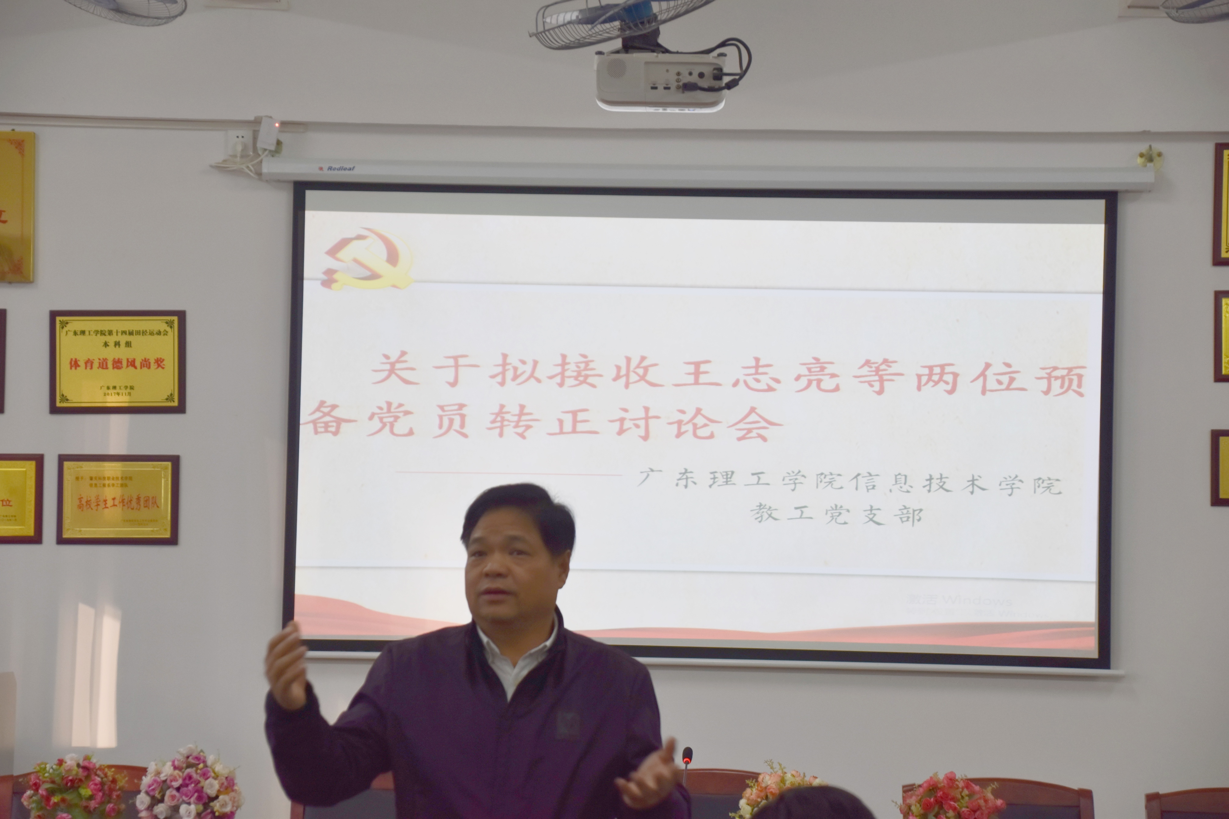 梁玉英老师介绍本次会议流程,会议议题是讨论拟吸收黄锦波同志和王志亮同志为中共预备党员。会上,黄锦波同志和王志亮同志分别汇报自己在思想、学习、工作和生活等方面的表现,对自己近一年来的进步与不足作了认真的回顾与总结,并表明自己在今后的工作中会严格按照党员的标准要求自己。梁书记在思想政治、工作能力、业务学习等方面的表现给予了黄锦波、王志亮同志充分的肯定并要求他们在今后更加积极接受党的教育,从组织上、思想上、行动上真正向党靠拢,不断提高自己的教学业务水平,掌握岗位本领,在工作中起到模范带头作用,全面提升自己的政治思想觉悟、党性原则和理论水平。