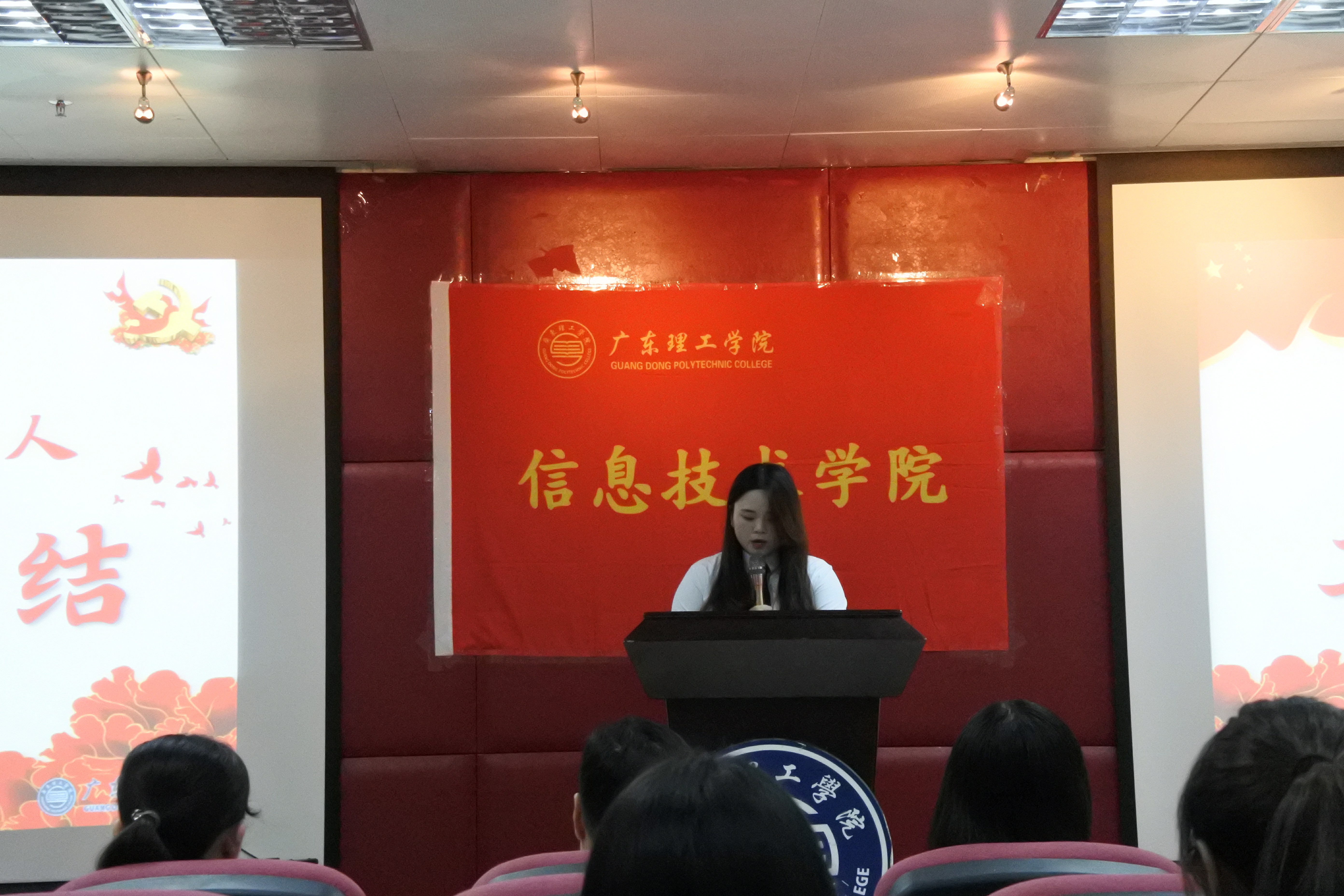 19级负责人周子瑜上台发表工作展望。她对员工党支部在未来一年中的工作做出了详细的安排,并对这些工作安排的圆满实施做出保证,表明自己工作设想的同时表达了自己对工作顺利完成的决心。
