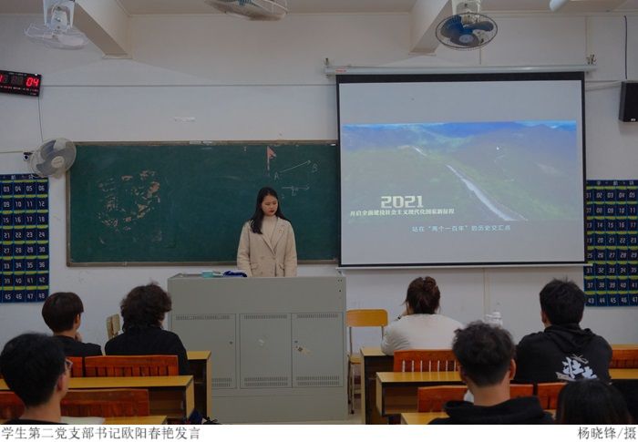 党课上,欧阳春艳播放共产党的百年发展史视频,讲述了党的发展历程上的重要历史转折点,从中体会中国共产党一路走来的艰辛与不易,并激起心中强烈投身于祖国发展的激情。她让入党积极分子诉说印象深刻的共产党精神与未来目标,并把共产党精神融入工作学习工作与目标当中。