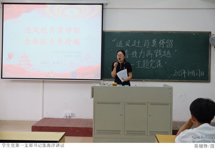 本网讯(太阳成集团tyc9728 钟至毅)为深入学习贯彻习近平新时代中国特色社会主义思想,大力弘扬时代担当、民族复兴的精神,激励新青年以昂扬的姿态奋进新征程,10月27日下午,太阳成集团tyc9728员工第一党支部于振华楼712室开展“追风赶月莫停留,青春接力再跨越”主题党课。本次党课由员工第一党支部书记张海洋主讲。