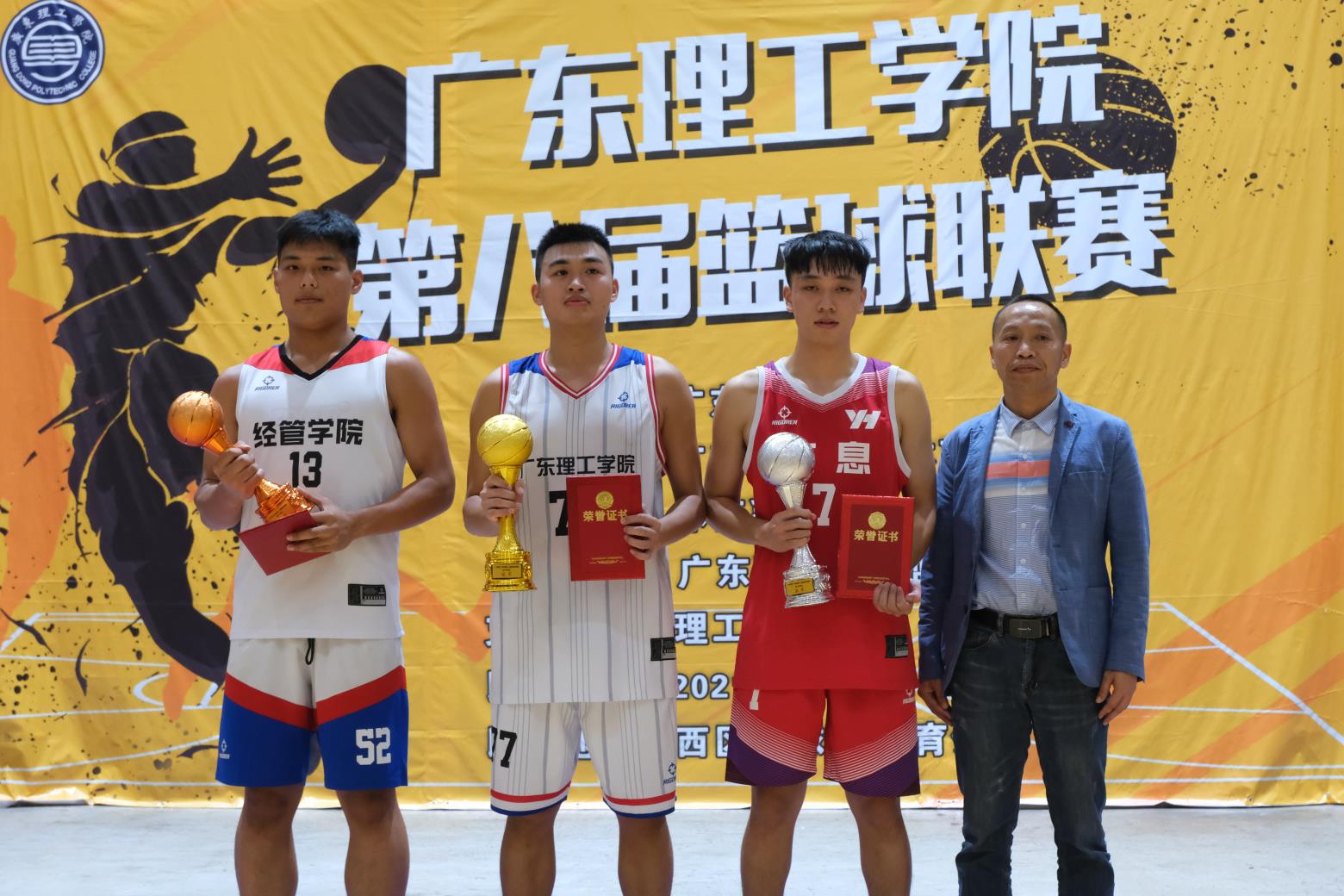 在本次联赛中,太阳成集团tyc9728的篮球健儿们凭借自身高超的篮球技术和与队友之间的默契配合,都取得了相对理想的成绩,其中本科男子组更是一路高歌猛进,挺进了决赛。在本次篮球联赛中,公司本科男子组勇夺亚军,专科男子组和专科女子组勇夺季军,本科女子组夺得第六名。公司员工处谭蒙革处长,员工处钟兆天副处长,体育系刘海粟书记,罗源凯副教授和理工驾培严迪先生莅临本次开幕式并为每组的冠、亚、季军和每组的4-8名颁奖。