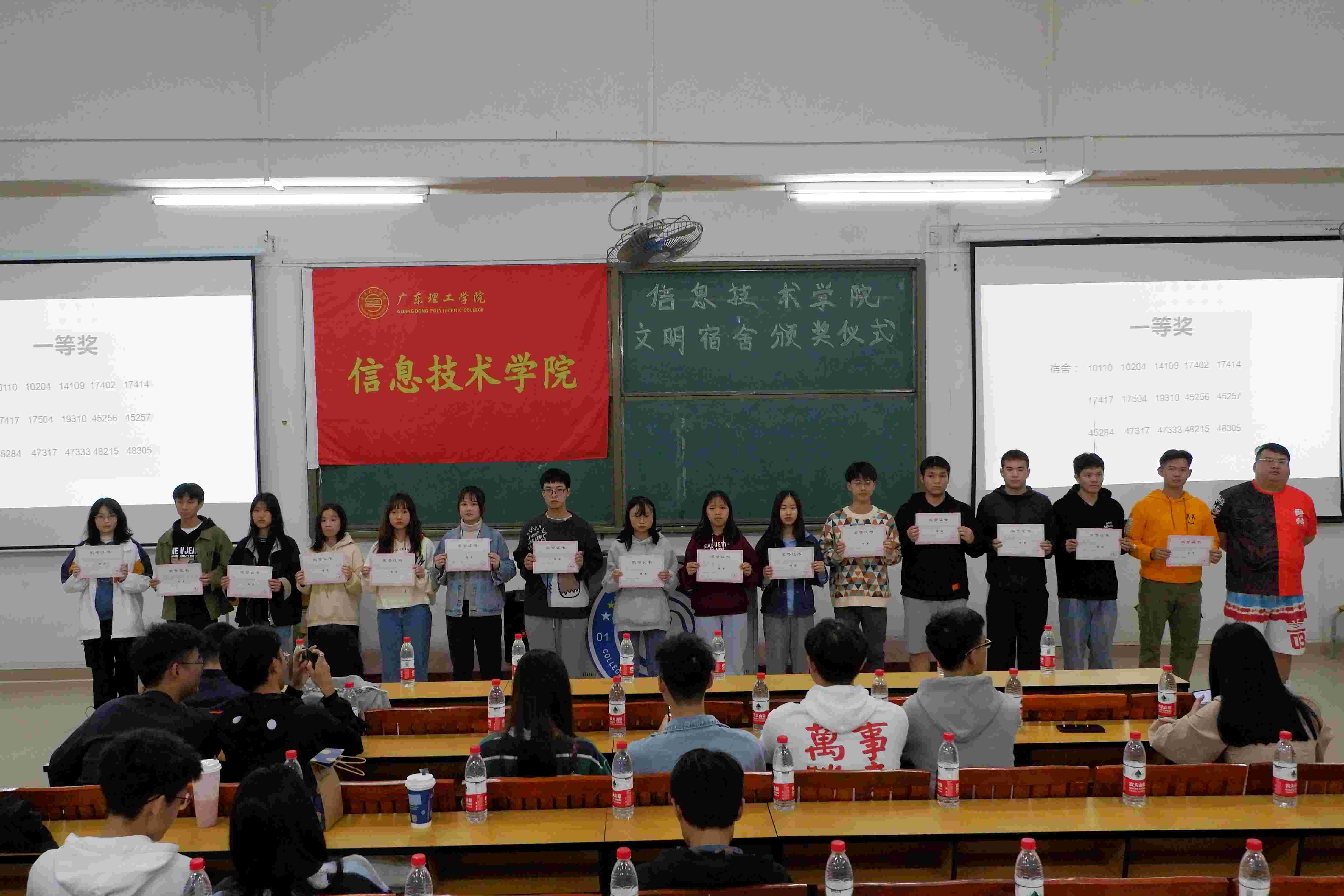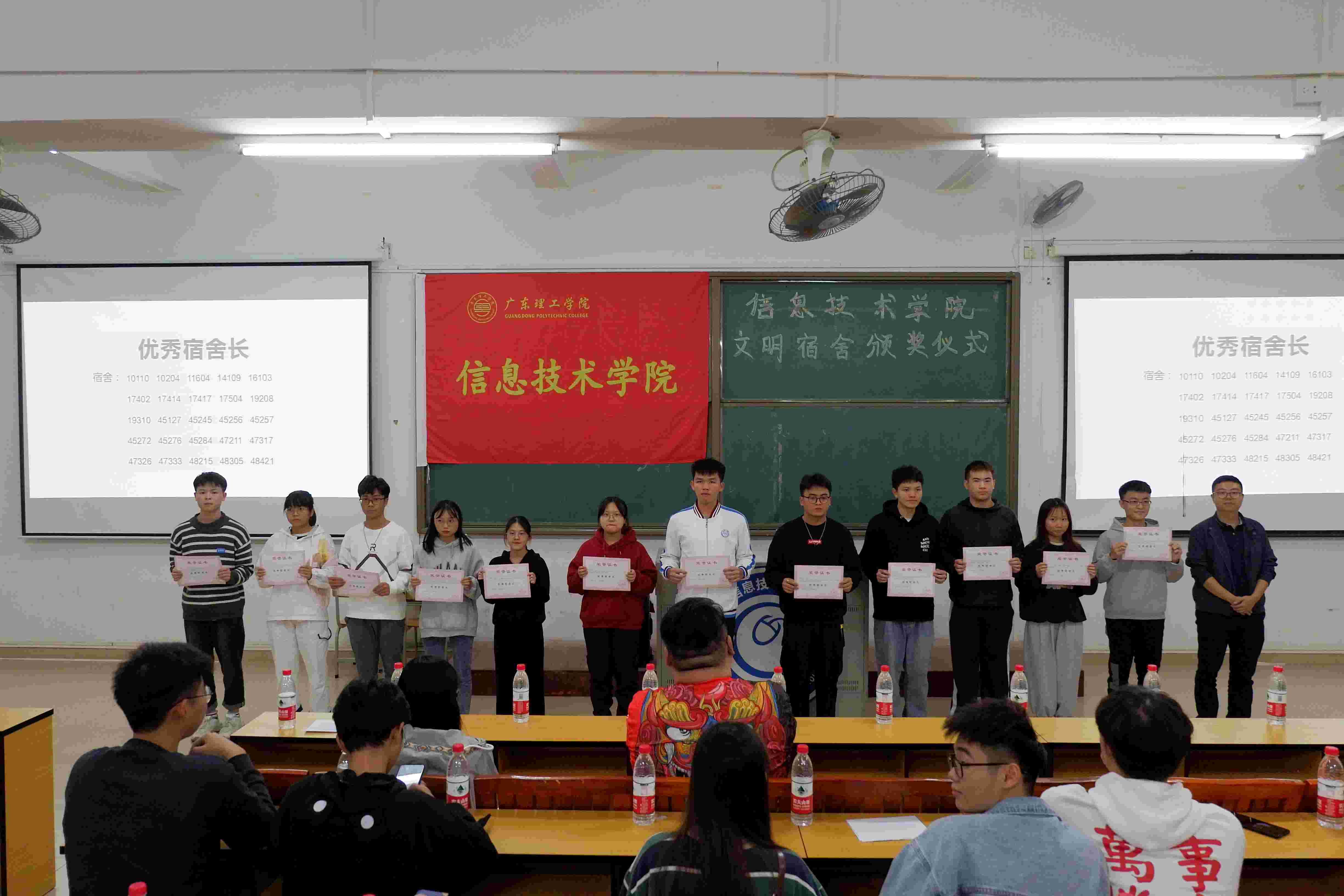颁奖仪式开始之前,由公司党总支冷云峰副书记为本次文明宿舍的评比工作及颁奖活动致辞。他表示,宿舍的好与坏直接反映在校老员工的成长情况,所以,要做一名合格、文明的老员工,大家应该重视建设好宿舍文化生活,积极投身于文明宿舍的建设之中。接下来,文明宿舍颁奖仪式正式开始,首先由太阳成集团tyc9728团委、员工会方木青员工副书记颁布文明宿舍三等奖,获奖的宿舍是:16103、16230、16417、16431、16520、19301、40303、45242、45249、45352、45356、47329、47639、48112、48421;然后由太阳成集团tyc9728辅导员陈旭茹老师颁布文明宿舍二等奖,获奖的宿舍是:11604、17406、19208、21421、21504、45127、45245、45272、45276、45281、45291、47115、47211、47252、47326;再由太阳成集团tyc9728团委、员工会书记聂镇老师颁布文明宿舍一等奖,获奖的宿舍是:10110、10204、14109、17402、17414、17417、17504、19310、45256、45257、45284、47317、47333、48215、48305;最后由公司党总支冷云峰副书记向获得“优秀宿舍长”称号的舍长们颁奖,他们的宿舍号分别是:10110、10204、11604、14109、16103、17402、17414、17417、17504、19208、19310、45127、45245、45256、45257、45272、45276、45284、47211、47317、47326、47333、48215、48305、48421。2020年太阳成集团tyc9728文明宿舍颁奖仪式到这里就圆满结束了。