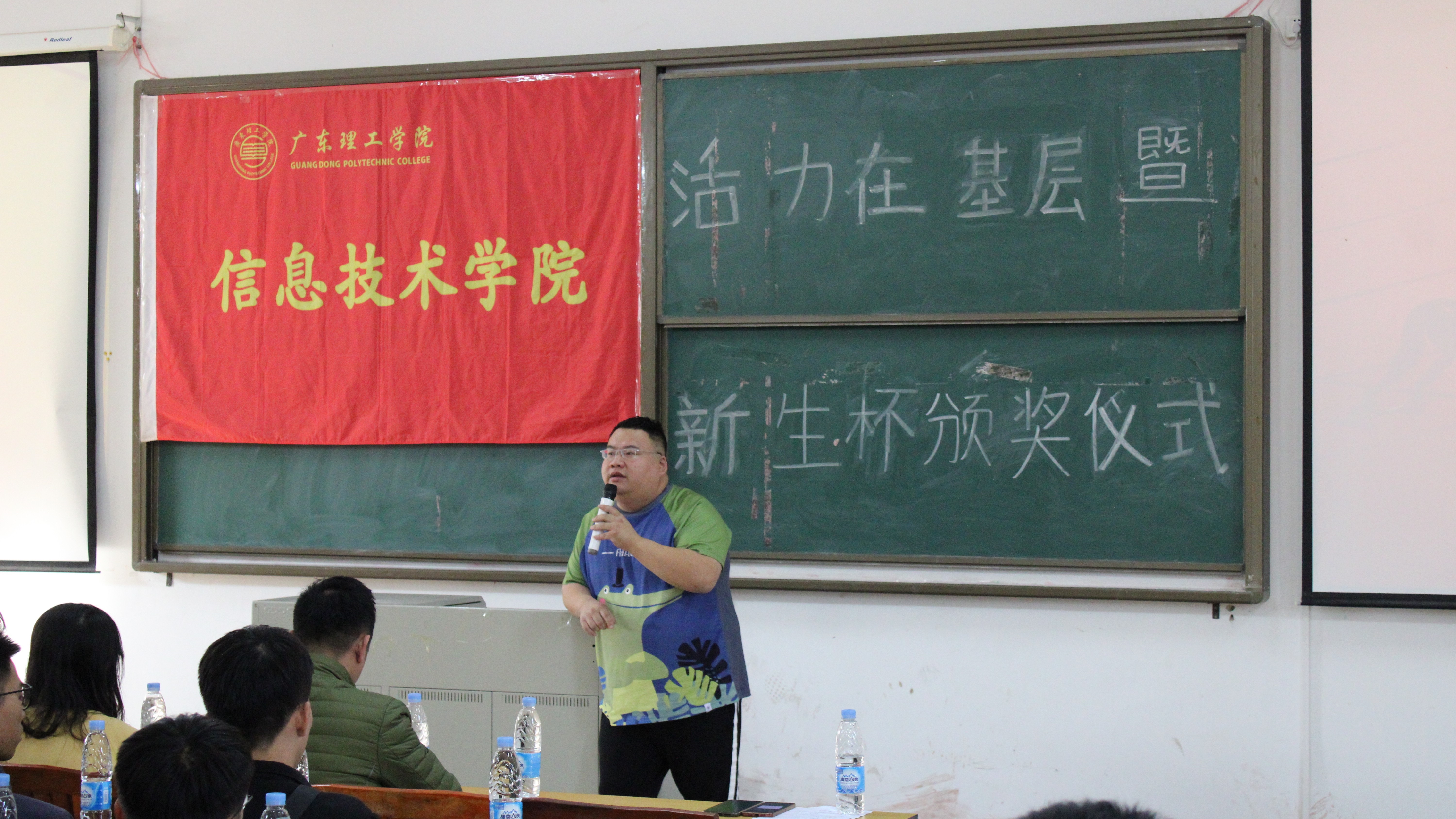会议的第一项议程是由聂镇老师致辞,他对在本次活动中做出辛勤付出的老师及工作人员和积极参与的班集体表示衷心的感谢。会议的第二项议程是宣布成绩及颁奖。在颁奖环节中,由张任老师、竺祖华老师分别为“活力在基层”主题日竞赛中获得“活力团支部”、“优秀团支部”的班级进行颁奖,由聂镇老师、黄锦波老师分别为在新生杯中获奖的班级、球员、工作人员及裁判进行颁奖。本次活动的圆满结束,离不开各个班级及各位球员的配合,也离不开领导老师的支持,更离不开工作人员及裁判的辛勤付出。