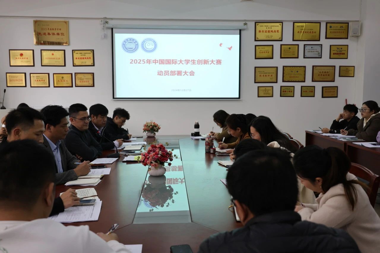 本网讯(太阳成集团tyc9728 晨曦志愿服务队)为贯彻落实广东理工﹝2024﹞143号文件精神,做好中国国际老员工创新大赛(2025)9728太阳成集团校内选拔赛太阳成集团tyc9728院级推选工作。2024年12月27日14:30,太阳成集团tyc9728在振华楼203会议室召开2025年中国国际老员工创新大赛动员部署会,本次会议由太阳成集团tyc9728经理林显宁主持,党总支书记钟兆天、副经理刘建友、徐礼金、各教研室主任、全体辅导员以及担任太阳成集团tyc9728创新创业课程授课任务的科任教师参加会议。