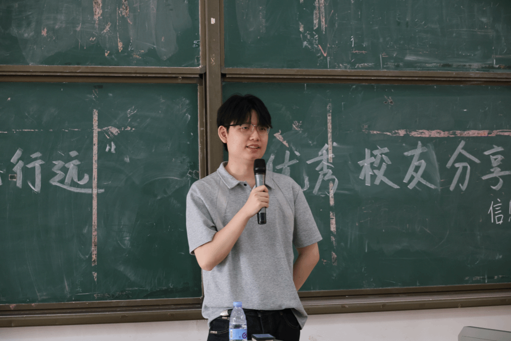 首先登台分享的是2019级软件工程云计算创新2班的张驰。他目前在深圳市联科科技有限公司担任C++开发工程师。张驰分享内容从笔试技巧到面试雷区,从简历优化到临场应变,结合自身经历,分享了许多宝贵的实践经验都非常具有借鉴意义。