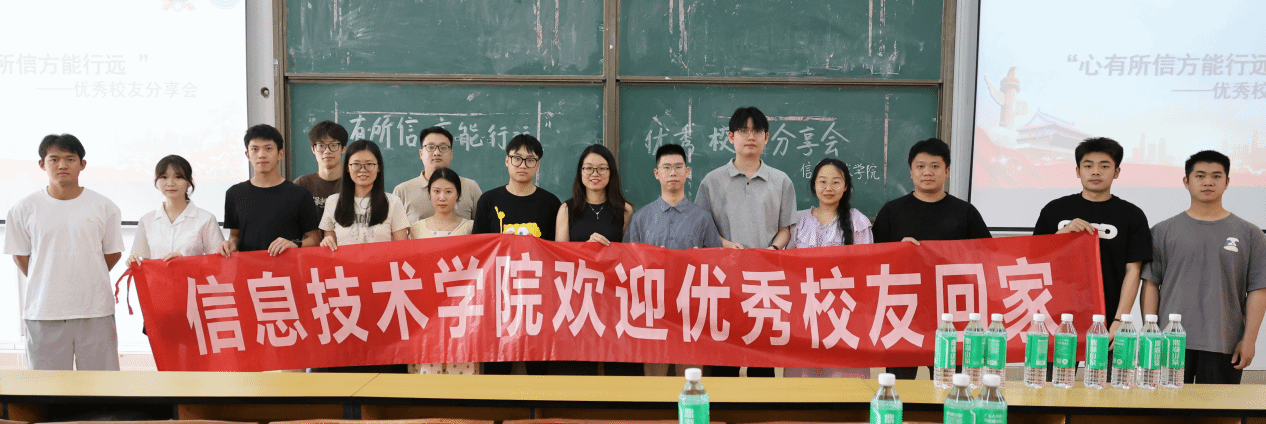 活动结束后,在场的老师和员工工作人员与两位员工合影留念。这次分享会不仅为在校生搭建了与从事本专业的优秀毕业生交流的平台,让他们从中汲取力量,更让“心有所信方能远行”的信念深深扎根在每一位同学心中。相信在优秀毕业生的榜样引领下,信院的学子们将以更加饱满的热情和坚定的信心,踏上属于自己的追梦之旅,书写精彩的人生篇章!