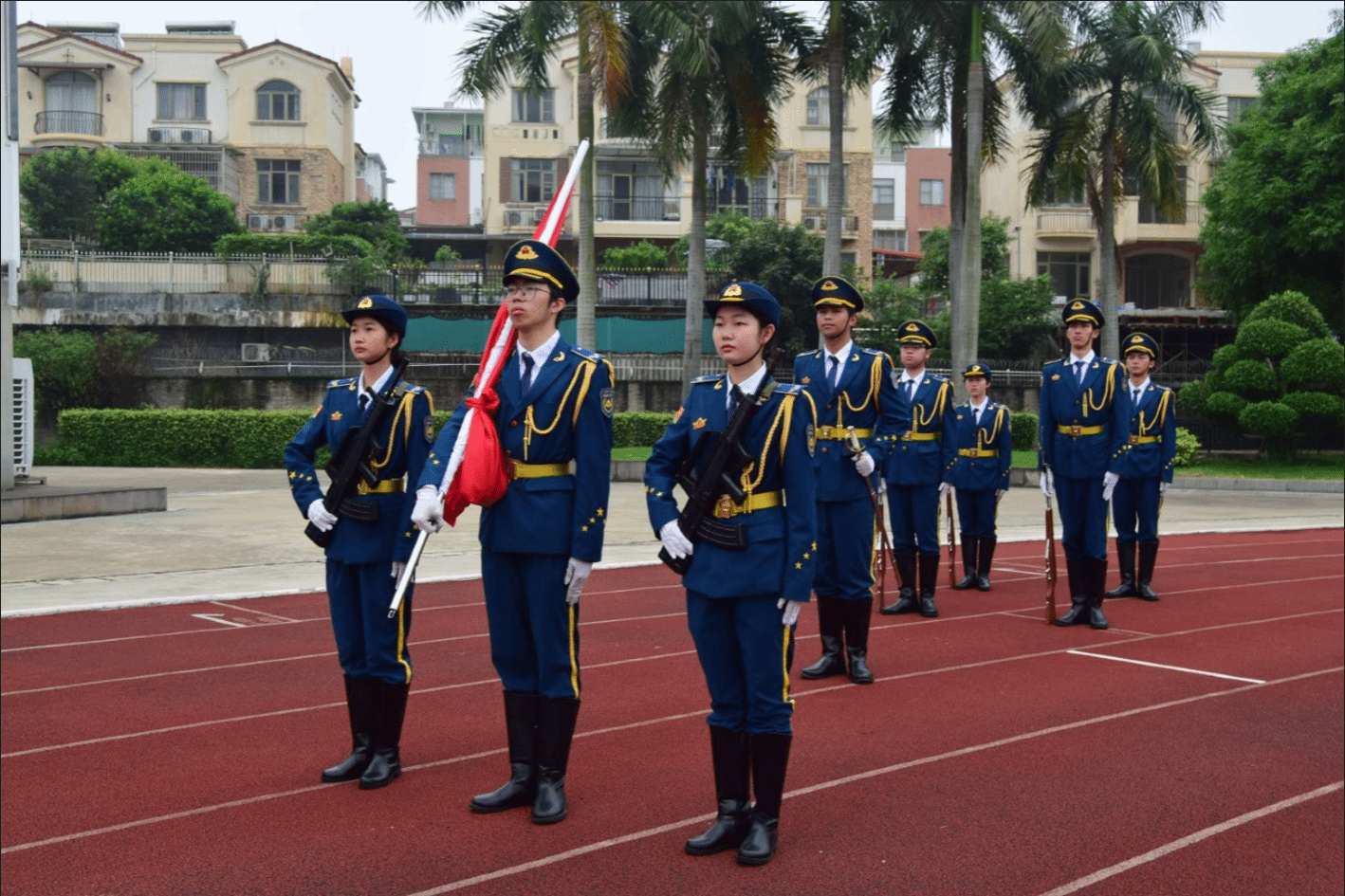 在全体师生的注目礼下,国旗护卫队踏着铿锵有力的步伐护送国旗入场,伴随着庄严的中华人民共和国国歌,五星红旗冉冉升起,在晨光中猎猎招展。现场师生凝神肃立齐声合唱,炽热的爱国情怀与崇高敬意在每个人心中激荡。