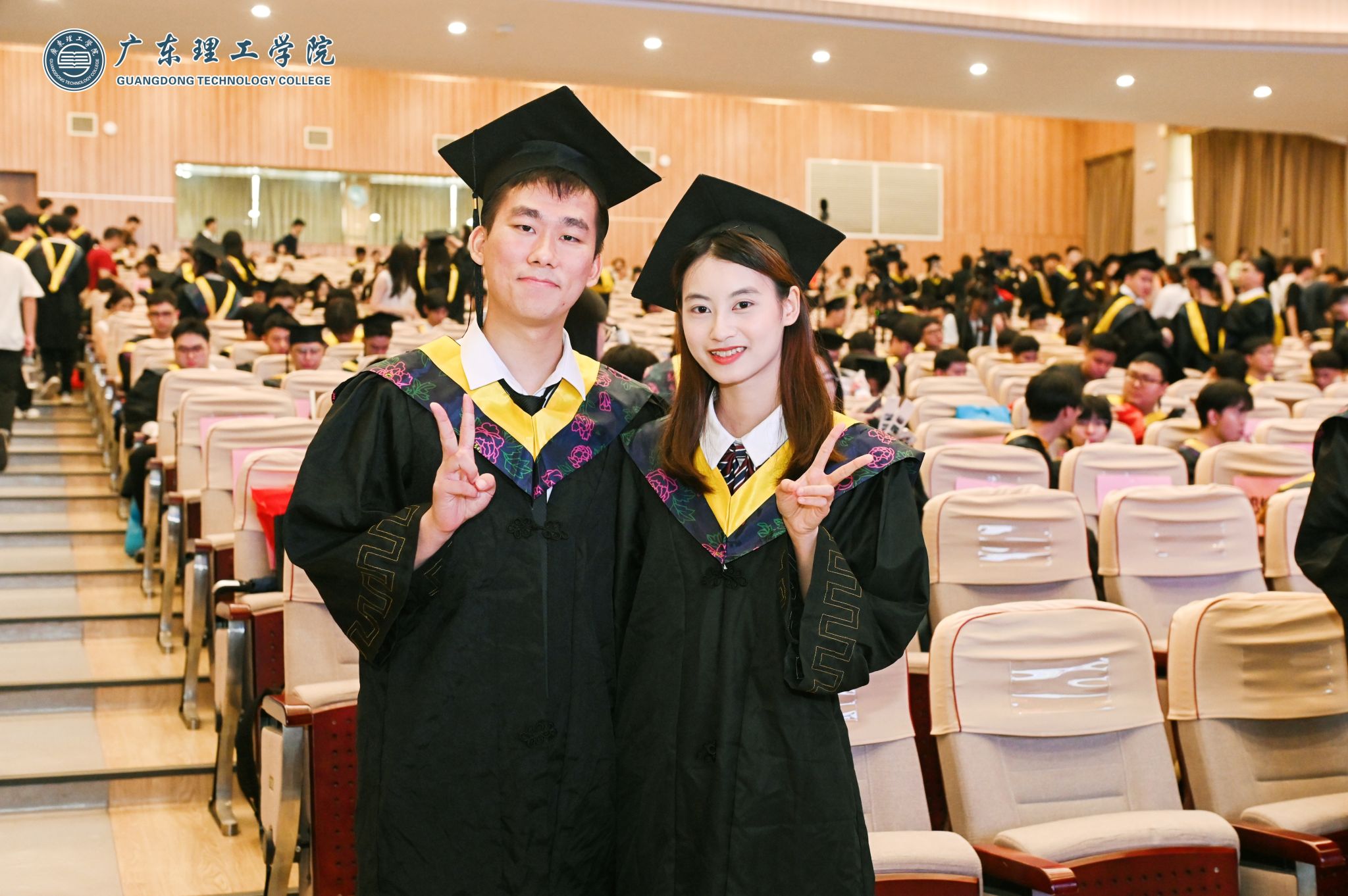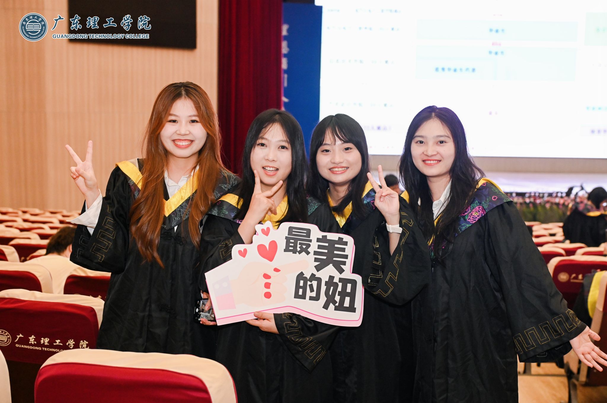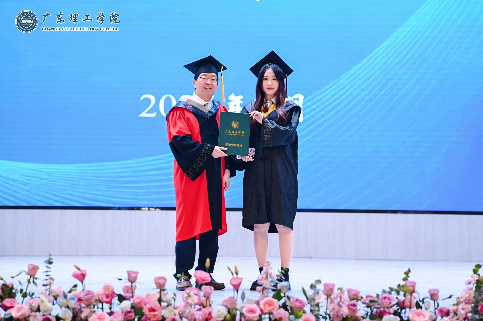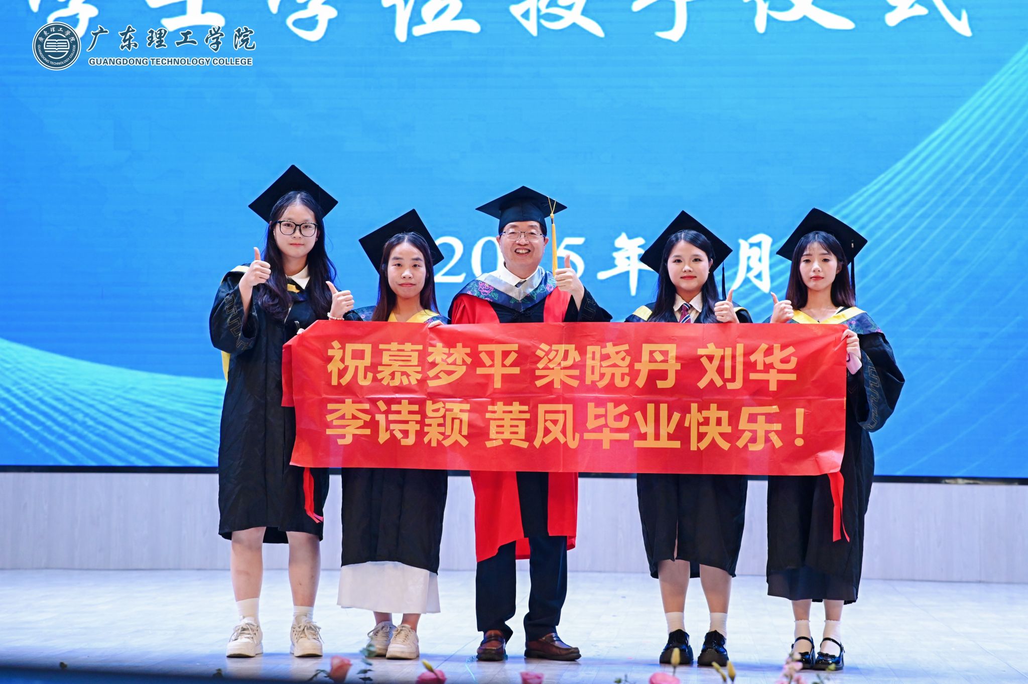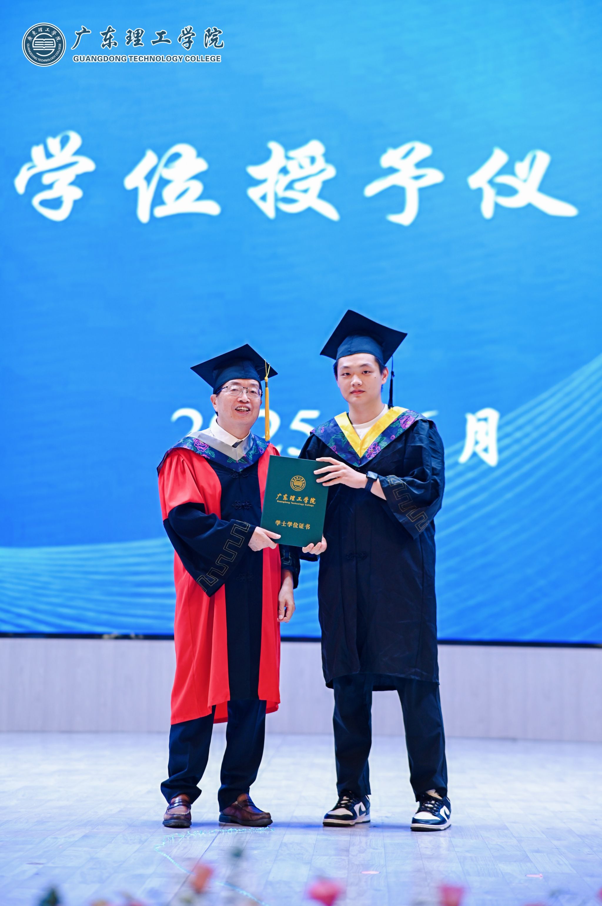 广东理工公司党委书记、学位评定委员会副主任委员胡海建为毕业生拨穗正冠并合影留念。
