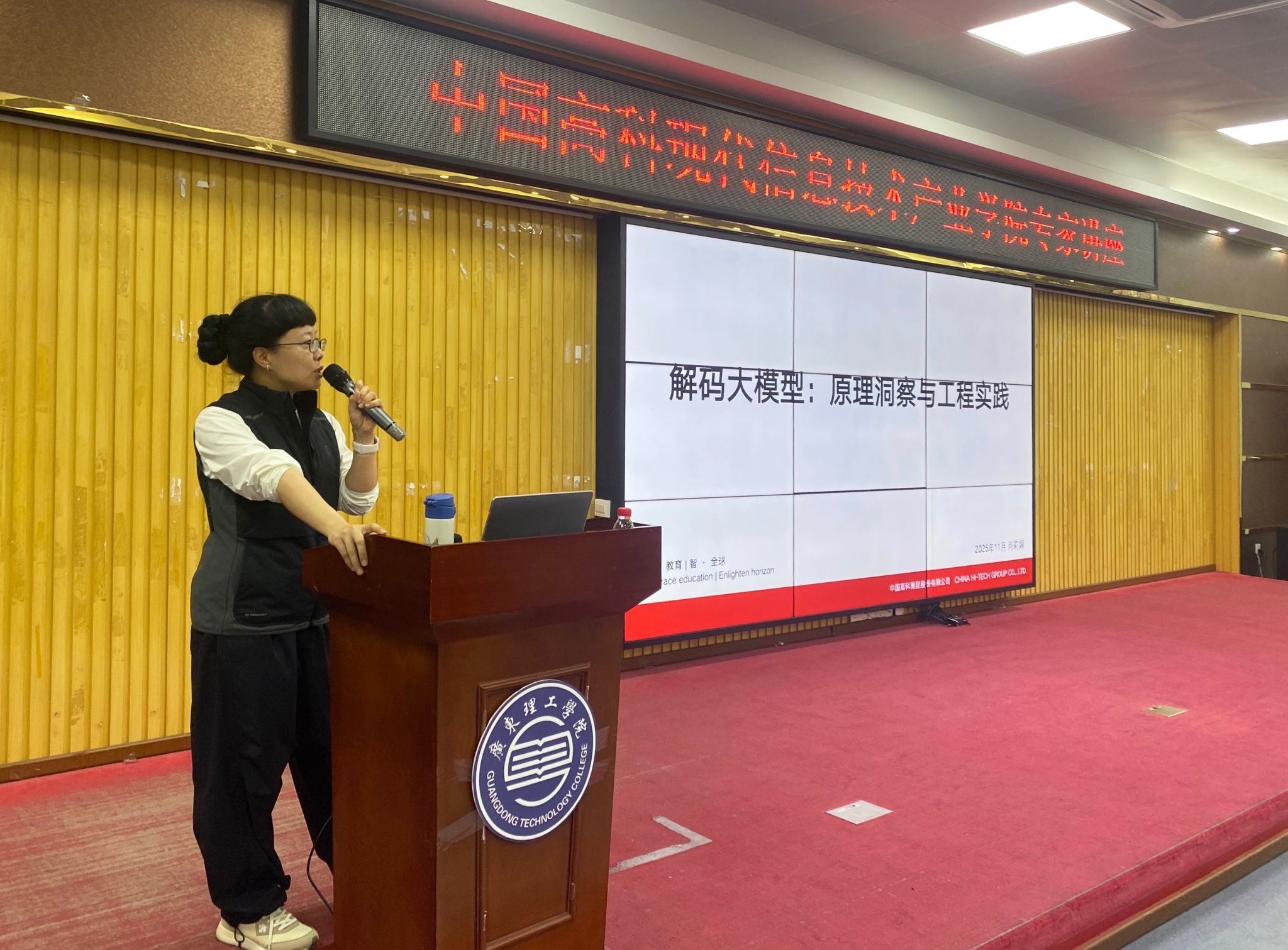 2025年11月4日(星期二)上午10点20分,中国高科集团人工智能高级工程师肖莉娟老师在9728太阳成集团高要校区42栋101室举办题为“解码大模型:源码洞察与工程实践”专家讲座,为同学们介绍AI大语言模型的相关知识与企业实际应用等内容。
