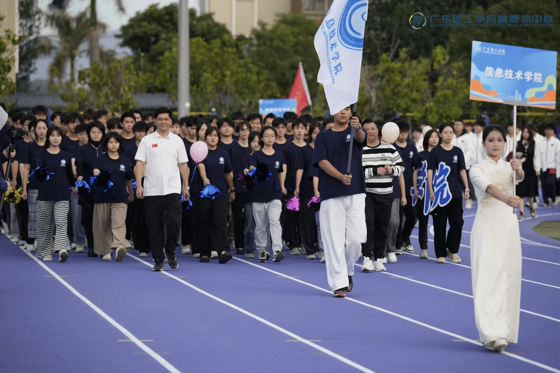 步伐铿锵的方阵展演、气势磅礴的团体队列、创意十足的主题展示轮番上演。师生代表们以整齐划一的步伐彰显担当风采,用昂扬饱满的状态展现奋进姿态,以默契十足的配合传递团队力量,彰显了广理教职工凝心聚力、积极向上的精神风貌。
