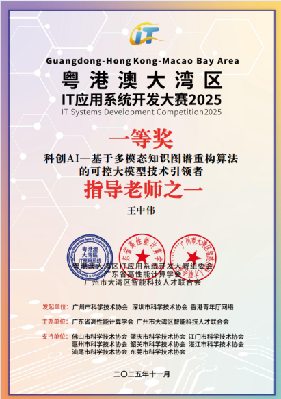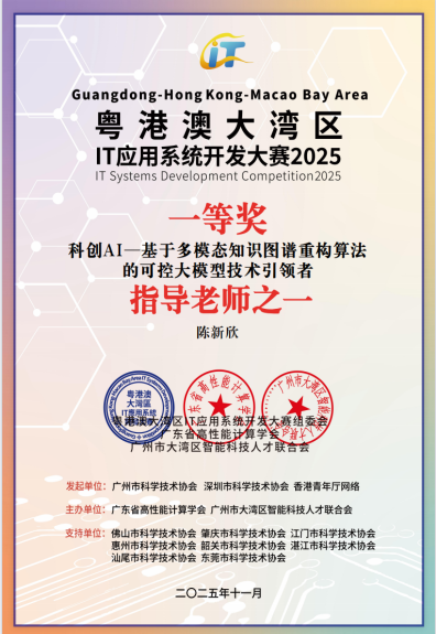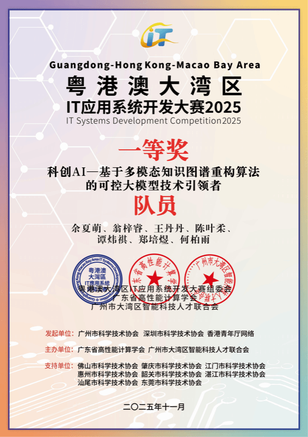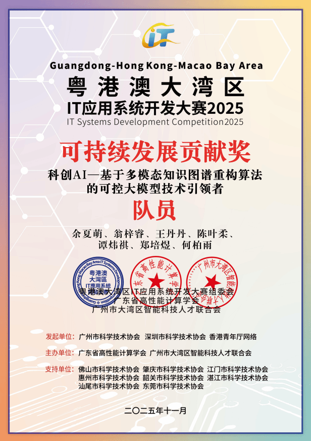 《科创AI——基于多模态知识图谱重构算法的可控大模型技术引领者》获一等奖与“可持续发展贡献奖” |