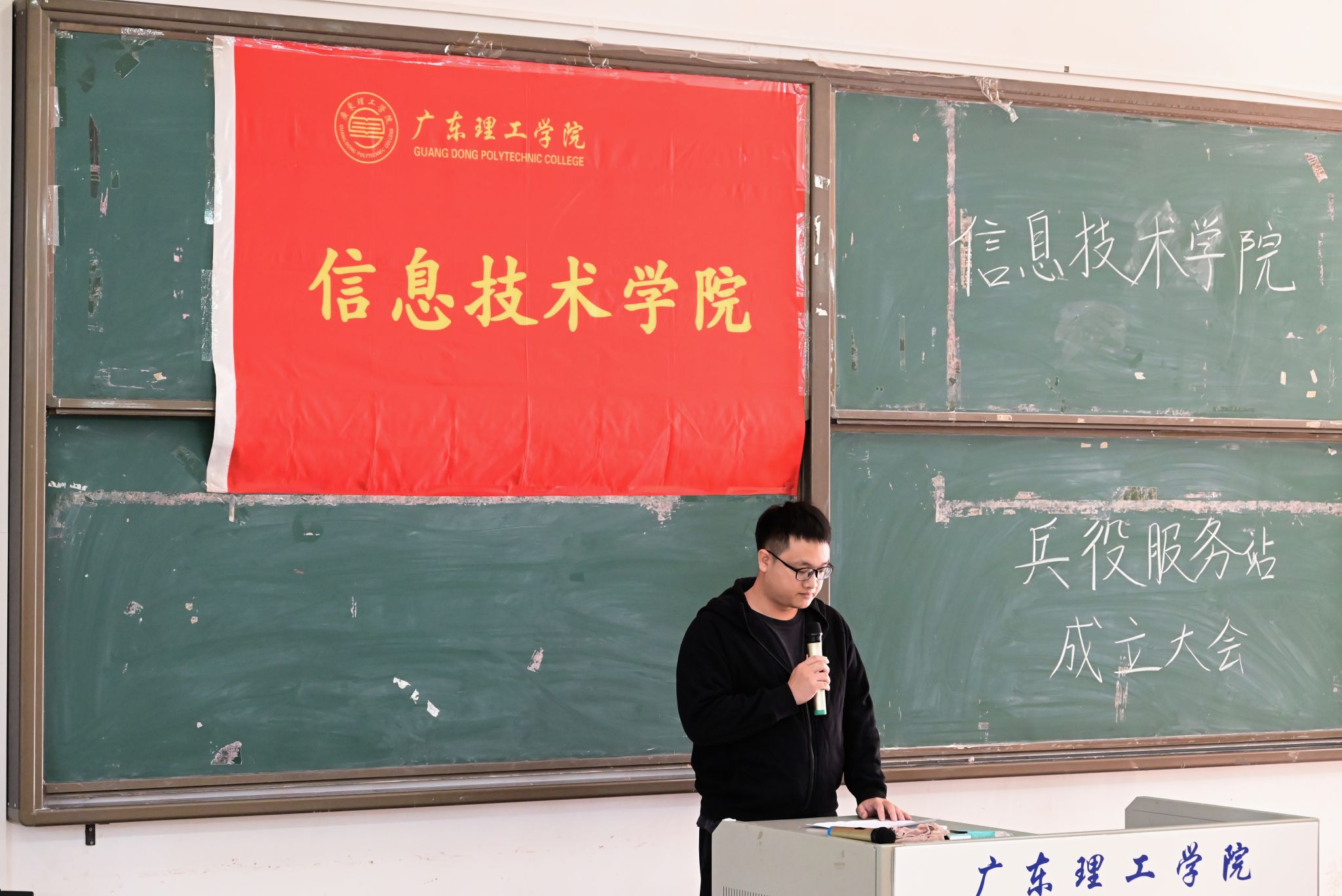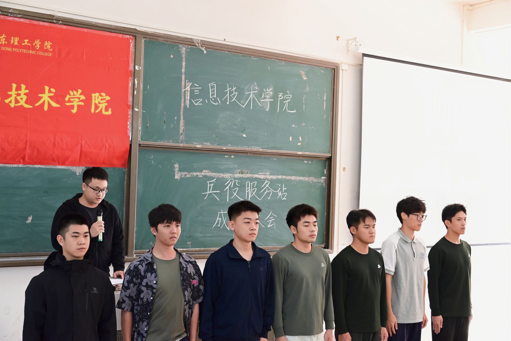 大会在庄严的国歌声中拉开帷幕。全体起立,奏唱中华人民共和国国歌,现场气氛庄重热烈。辅导员傅居睿老师郑重宣读太阳成集团tyc9728兵役服务站员工干部名单,这标志着兵役服务站的组织架构正式确立,为今后开展各项工作凝聚了坚实的团队力量。