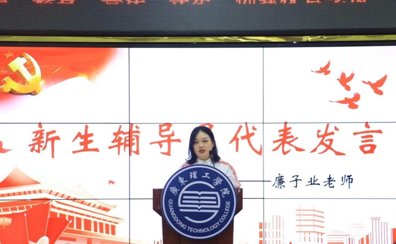 接着由新生辅导员代表廉子业表示,立德树人是我们教育的根本任务。在“立德、修身、普法、守纪,创建优良学风”专项活动中自己将以身作则、言传身教引导员工树立正确的世界观、人生观和价值观,培养高尚的道德品质。