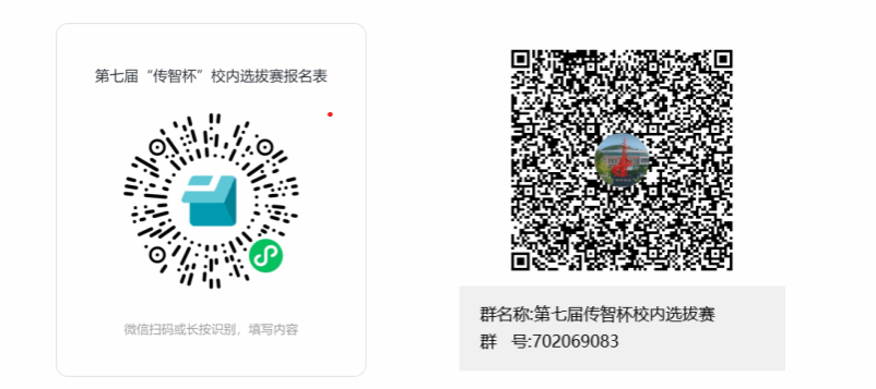 4)参赛团队报名截止时间:2024年10月20日,报名链接:https://f.wps.cn/g/0UhdmLlt/「第七届“传智杯”校内选拔赛报名表」。