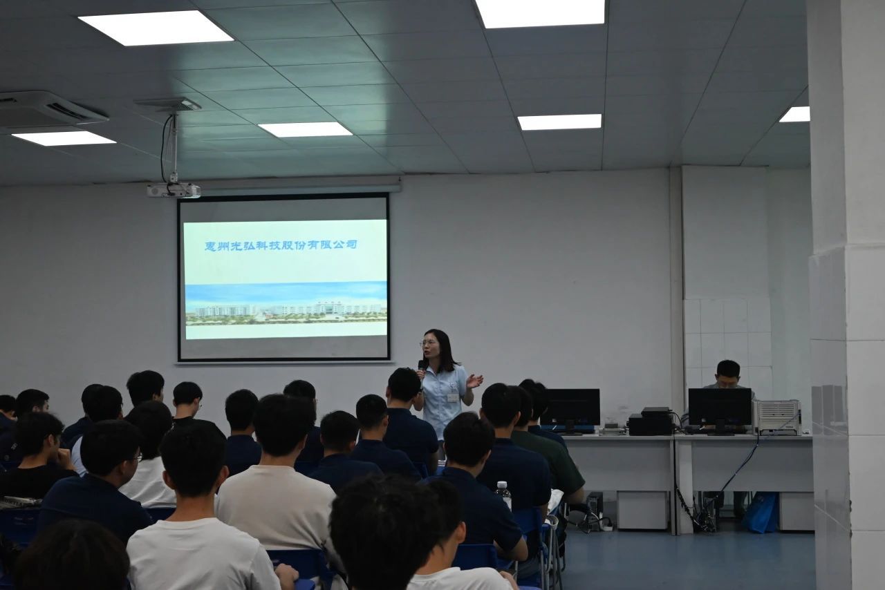 此次访问旨在搭建校企交流平台,让员工们亲临现代高科技企业的生产一线,直观感受光弘科技的先进制造工艺与严谨的科研氛围,增进同学们对专业知识的理解与应用能力。