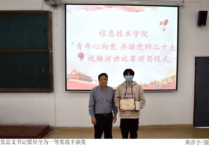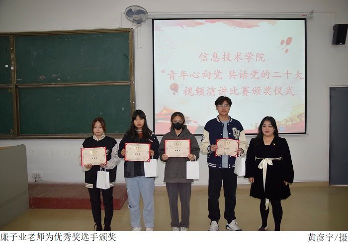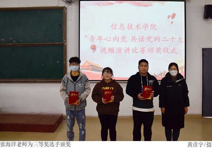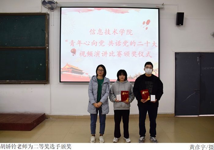 在颁奖仪式中,党总支书记梁星全对获奖的选手表示衷心的祝贺,并提出了作为新时代青年要牢记习近平总书记的殷殷嘱托,怀抱梦想又脚踏实地,敢想敢为又善作善成,还要牢记 “敢于吃苦、勤于吃苦、甘于吃苦”的理念,在日常学习生活中充分展现新时代青年昂扬向上的拼搏斗志和奋发有为的飒爽英姿。最后由梁星全书记、胡娇铃老师、张海洋老师、廉子业老师依次给一、二、三等奖及优秀奖获奖选手颁奖并合影留念。