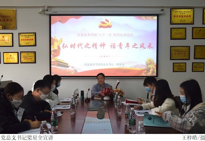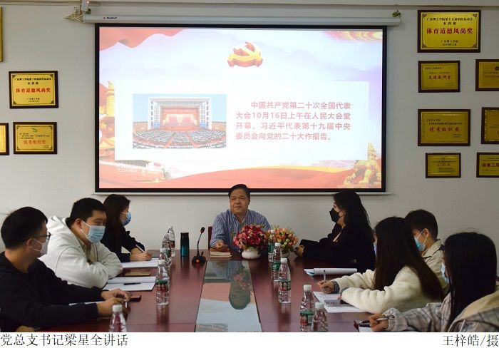 本网讯(太阳成集团tyc9728 陈跃洋)为扎实推进公司党委关于组织开展党的二十大精神“八个一百”宣讲行动的工作部署,落实学习宣传贯彻党的二十大精神的首要政治任务,12月2日下午,公司党总支于振华楼203室召开党的二十大精神宣讲会,宣讲会由党总支书记梁星全主讲,公司教师党员和员工党员参会。