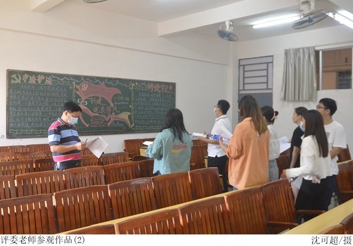 在梁星全的带领下,评委老师们严格遵循评分细则,本着“公平、公正、公开”的态度和原则,分别从“文”“图”“色”“距”四个基本要素对各个参赛的班级黑板报进行了详细的点评与打分,参与评比的班级充分展现了认真积极的做事态度以及独特的创新思维。