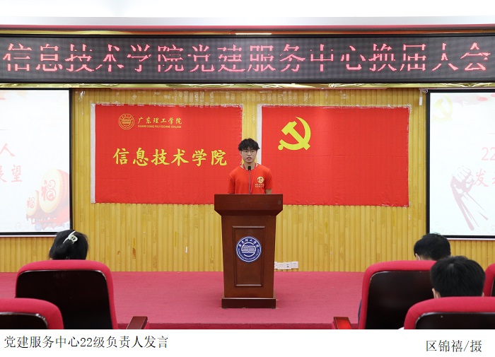 党建服务中心指导老师胡娇铃上台宣读了22级党建服务中心负责人以及员工骨干名单,同时希望新任骨干在接下来工作里能弘扬党建服务中心干实事的精神,同心协力,在上一届的基础上创新工作方法,不断完善工作。22级负责人也上台发表工作展望,保证认真完成接下来的每一份工作,表明自己将带领党建服务中心砥砺前行的信心与决心。