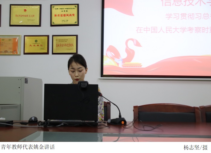 随后,青年教师代表姚金、曹华娟、邹景荣老师依次上台分享了研习心得体会,纷纷表示努力做好青年员工思想政治教育的坚定“领路人”的决心,进一步提高育人质量。