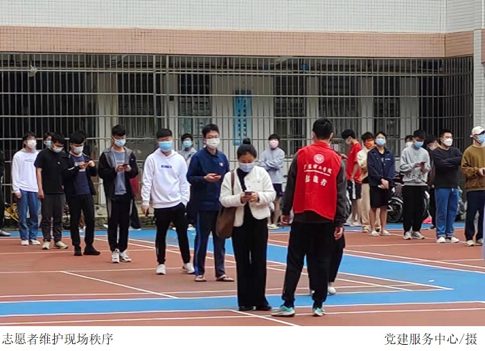 志愿者们提前到达指定位置集合,引导19栋员工到指定地点进行“三天两检”核酸检测,及时清点人数并维持好现场秩序。在食堂配餐到位后,工作人员根据提前制定的送餐排班表,按照计划有序进行。志愿者们分工合作,为员工送去了慰问和温暖。