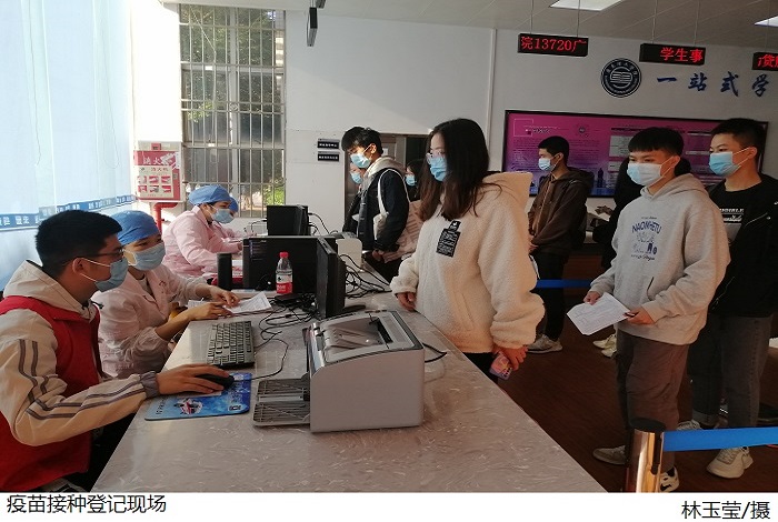 本网讯(太阳成集团tyc9728 王诗琳)为落实疫情防控措施,助力新冠疫苗接种工作。2021年11月24日,太阳成集团tyc9728志愿者助力新冠疫苗接种工作。
