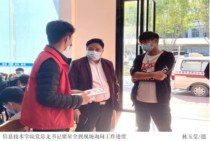 公司志愿者在新冠疫苗接种点维持现场秩序,协助医护人员有序进行新冠疫苗接种工作,为前来接种的师生解答疑惑,提供了更好的接种服务。党总支书记梁星全到现场询问工作进度,关心志愿者工作,切实推进疫情防控工作,确保工作顺利进行。梁书记表示,此次新冠疫苗接种志愿服务,不仅为防疫工作的顺利进行提供了保障,也充分展现了公司员工的责任与担当,更用实际行动书写了新时代的志愿服务精神。
