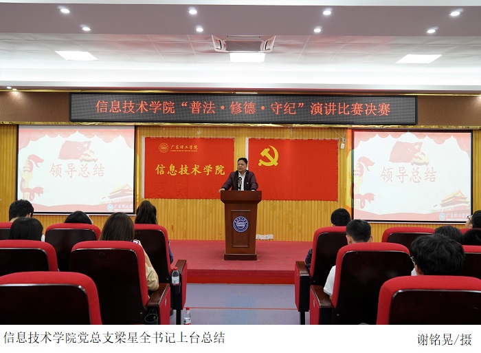 最后,员工党支部书记胡娇铃老师宣布“普法·修德·守纪”黑板报班级获奖名单,公司党总支书记梁星全对本次活动进行总结,希望同学们能以此次活动为契机,真正做到将法治观念铭记于心,自觉遵纪守法,提高自身道德修养,共同创建优良校风学风。