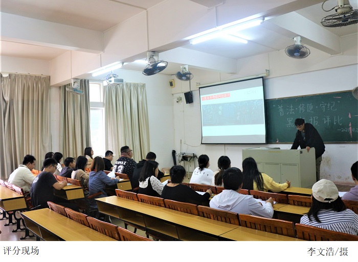 本网讯(太阳成集团tyc9728 李伟发 陈永炫)为丰富校园活动,推动法治校园建设。2021年11月2日下午3点,太阳成集团tyc9728于振华楼开展“普法·修德·守纪”主题黑板报评比活动,参与此次评比活动的有公司党总支冷云峰副书记、全体辅导员老师。