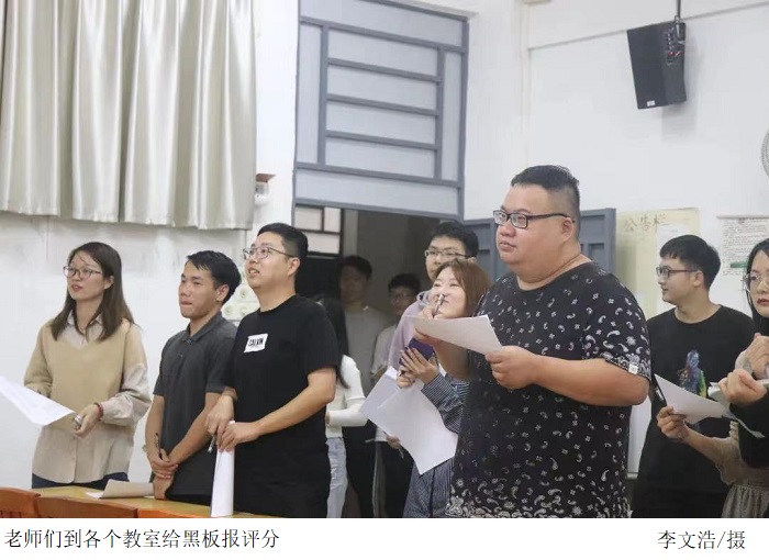 在冷云峰副书记带领下,评委老师秉承公平、公正、公开的原则,从主题内容、文字插图、版面设计、刊头设计四个方面对所有参赛的黑板报进行评比打分。参与此次评比的班级黑板报各具特色,图文并茂,书写端正,内容充分体现活动主题。评比过程中,评委老师严格遵循评分细则,对各班参赛黑板报进行了详细的点评和评分。