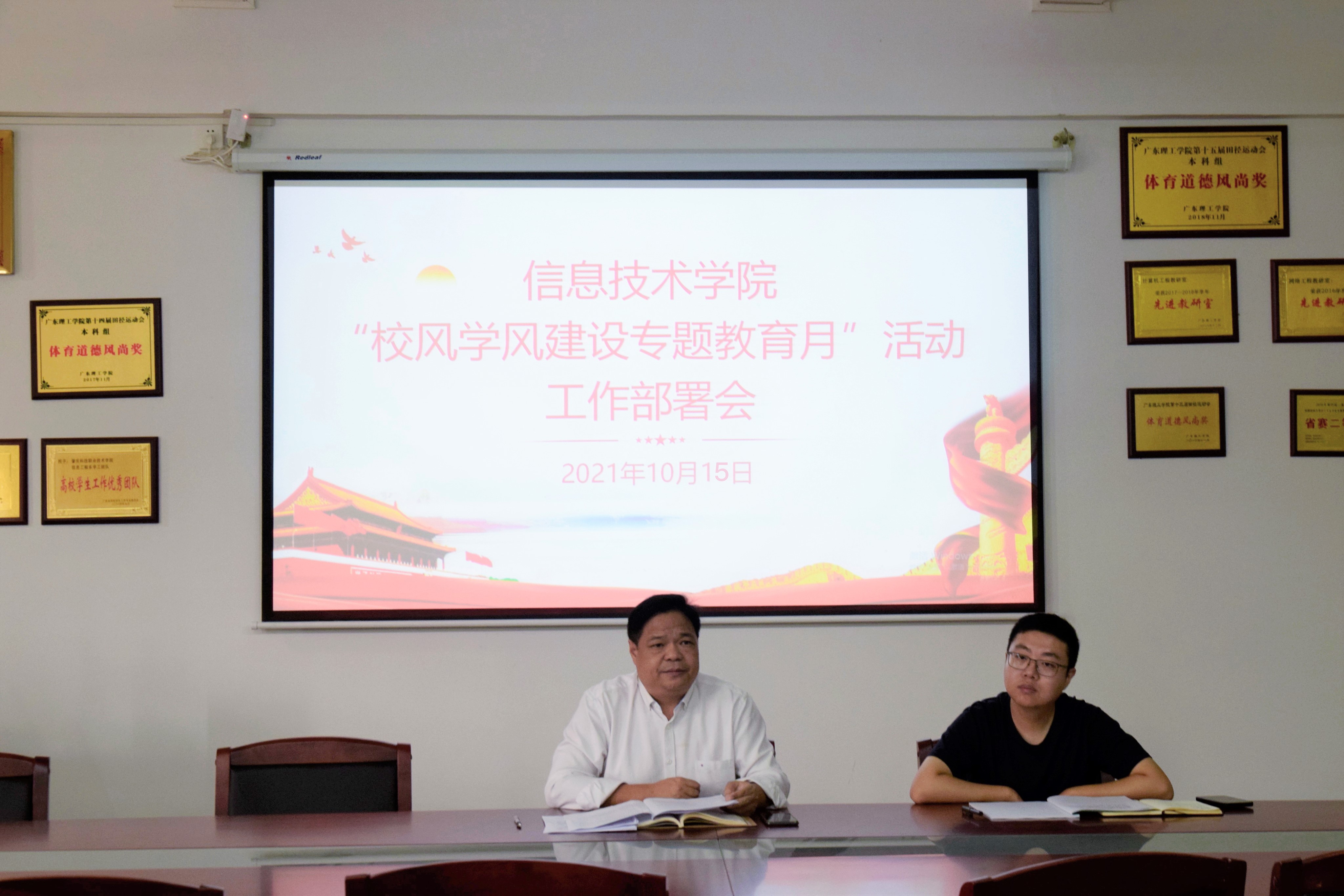 本网讯(太阳成集团tyc9728 黄林曼)为落实立德树人根本任务,在普法修德守纪教育活动基础上,进一步推进公司的校风、学风建设。2021年10月15日,太阳成集团tyc9728于振华楼203室召开“校风学风建设专题教育月”活动工作部署会,参与此次会议的有公司党总支梁星全书记、冷云峰副书记,以及全体辅导员。