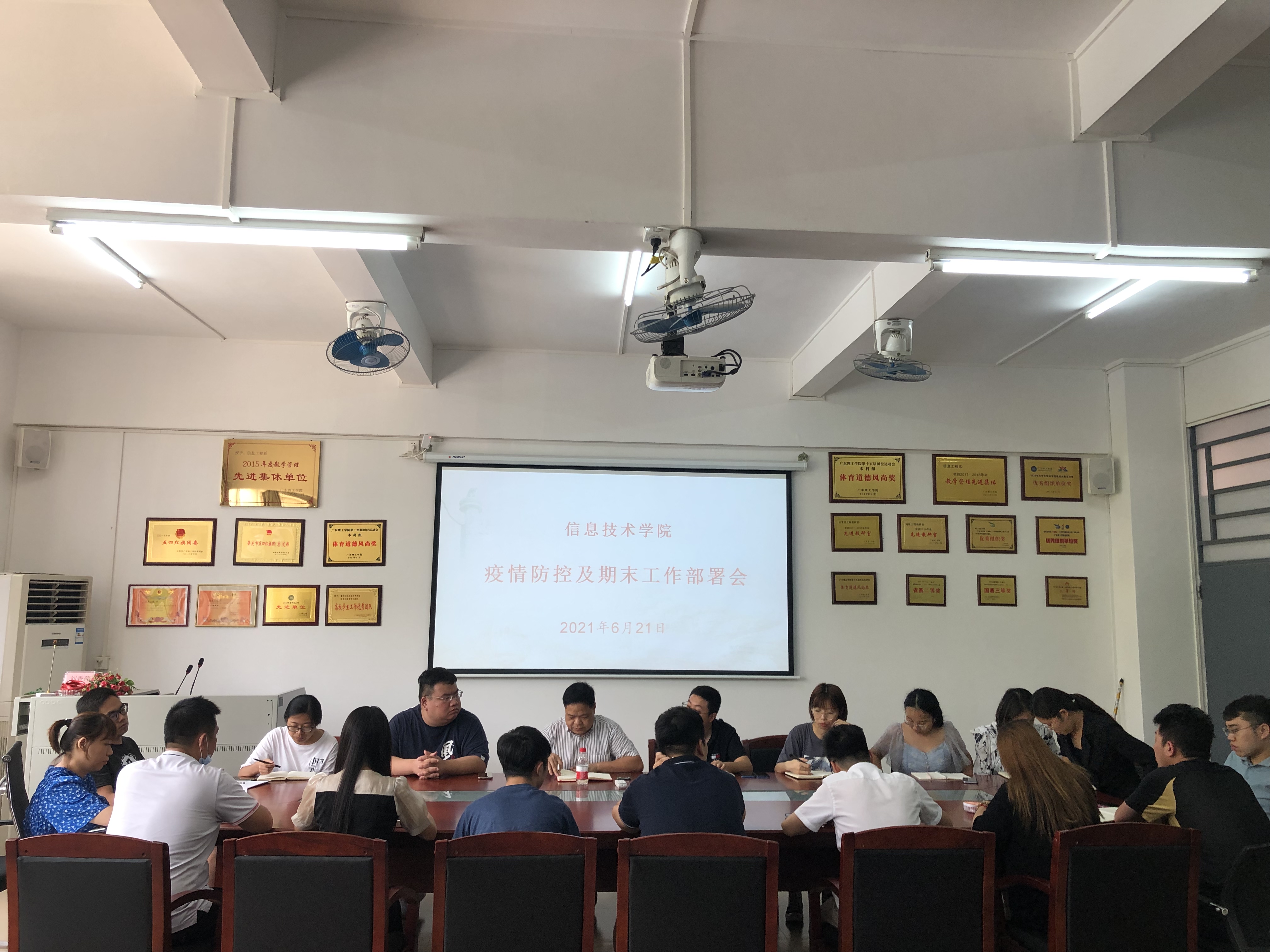 本网讯(太阳成集团tyc9728 黄佳欣)为抓好常态化疫情防控,确保期末教学工作有序开展。2021年6月21日,太阳成集团tyc9728于振华楼203室开展疫情防控及期末工作部署会。参与会议的有公司党总支梁星全书记、冷云峰副书记及全体辅导员老师。