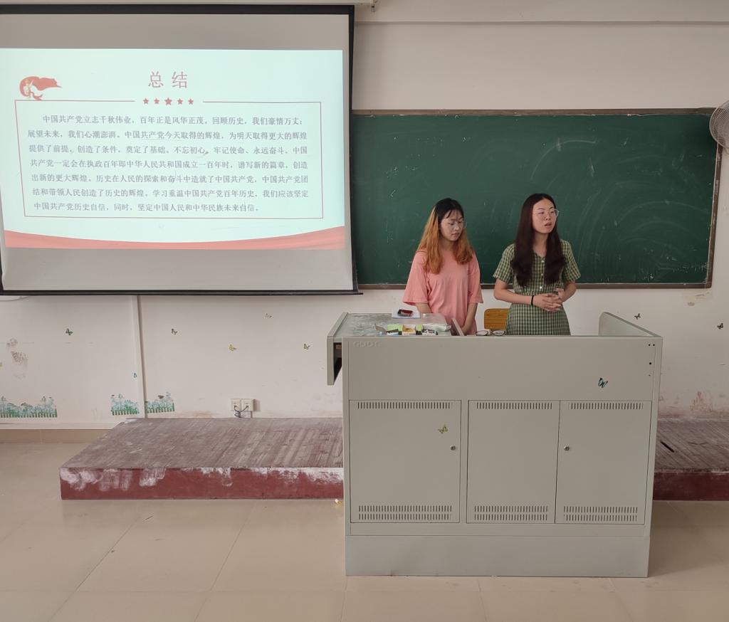 郑少君同志带领积极分子回顾党的百年辉煌,表示中国共产党在近百年艰苦的奋斗历史中,积累大量的党建经验、斗争经验、社会主义建设的经验,让积极分子感受到党的共产党的伟大。张金清同志向同学们讲解开展党史学习的重要意义,指出要不忘初心、牢记使命,充分认清历史使命和时代责任,坚定爱国的信仰信念,做到知史爱党,知史爱国。