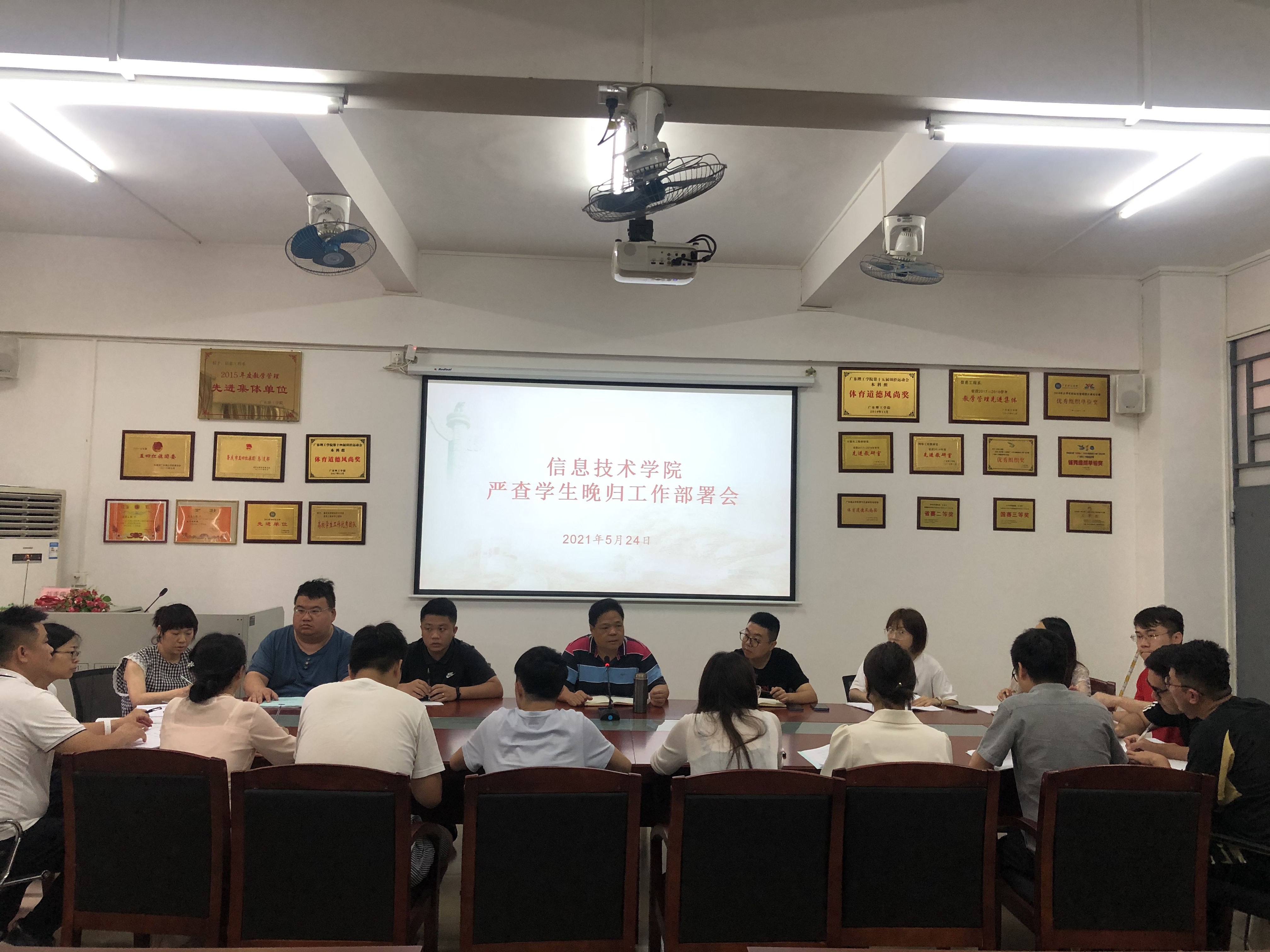 本网讯(太阳成集团tyc9728 林淑卿)为加强员工宿舍管理,强化校园安全教育。 2021年5月24日,太阳成集团tyc9728开展严查员工晚归工作部署会,参与本次会议的有太阳成集团tyc9728梁星全书记、冷云峰副书记以及全体辅导员。
